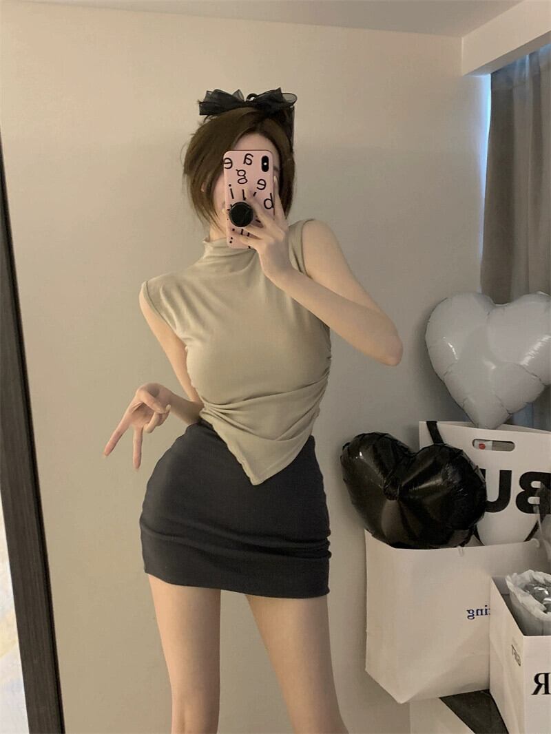 スパイス ハーフハイカラー 半袖 Tシャツ レディース 2023 夏 新デザイン感覚 ニッチ イレギュラー スリム スリム トップス サマー 夏物 bstraw12858286871 | beaute25
