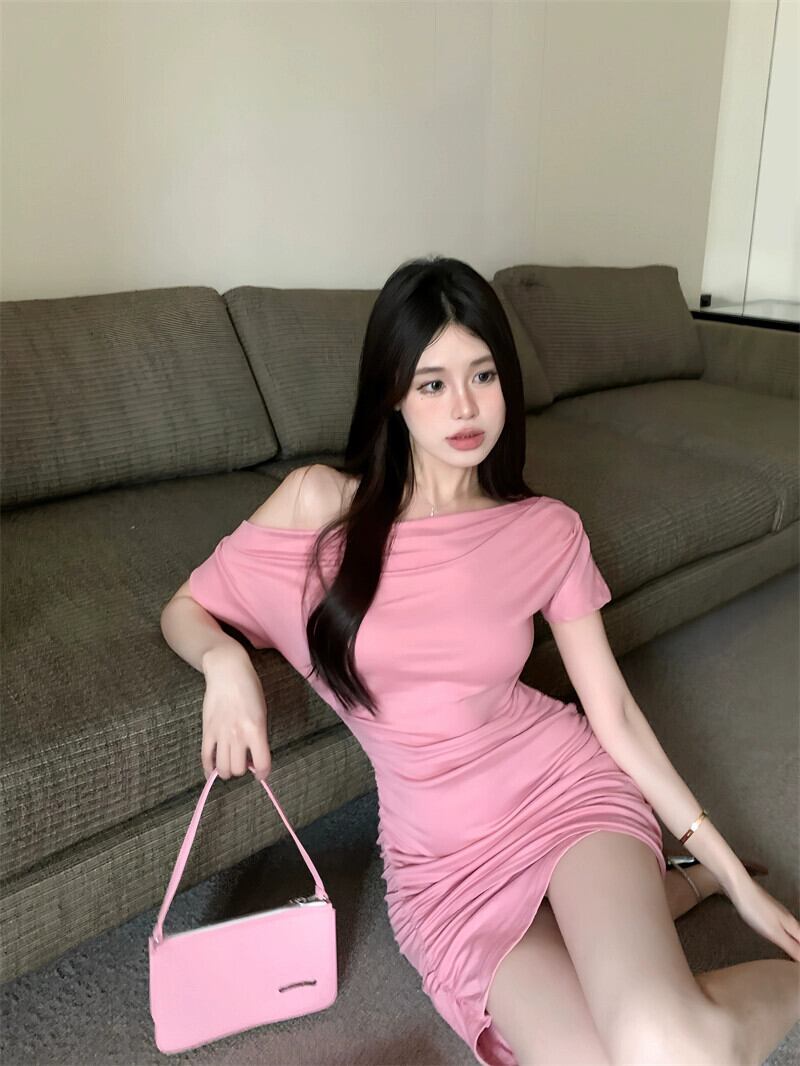 ピンク半袖 T シャツドレス女性の夏のスカート純粋な欲望プリーツウエストタイトなセクシーなバッグヒップスカート サマー 夏物 Tシャツ ピュア bstraw84205945376 | beaute25
