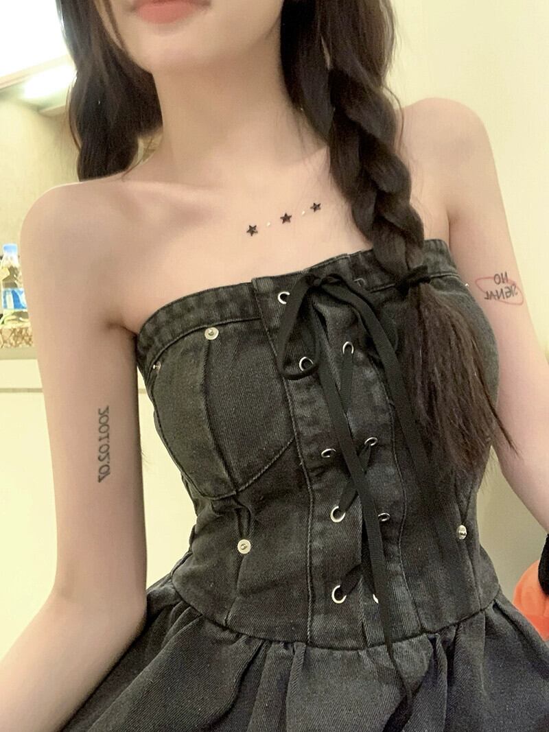 スパイス レトロ ワンショルダー デニム チューブ トップ ドレス レディース サマー スカート セクシー ウォッシュド ウエスト バッグ ヒップ スカート 夏物 bstraw80628673191 | beaute25
