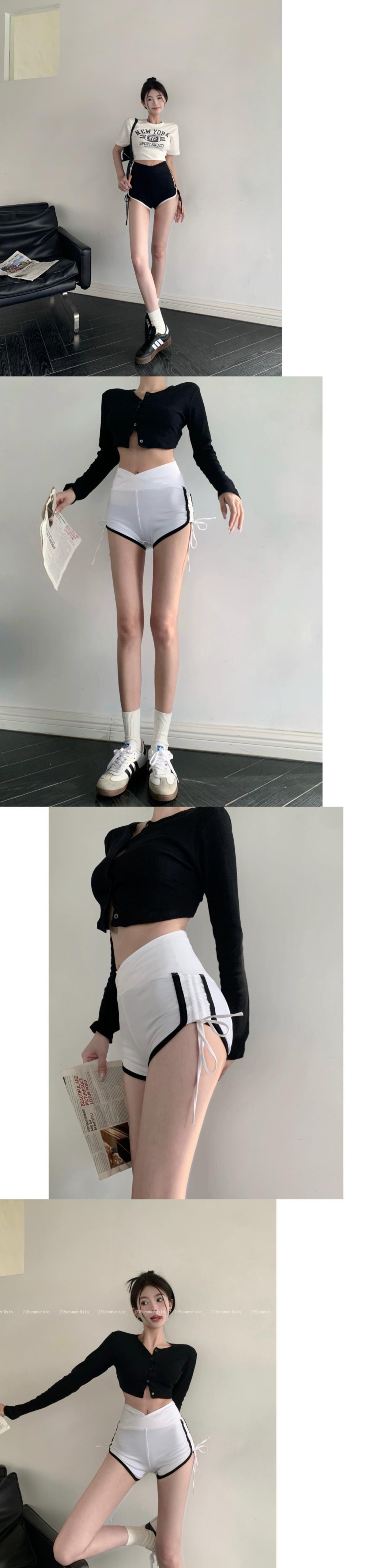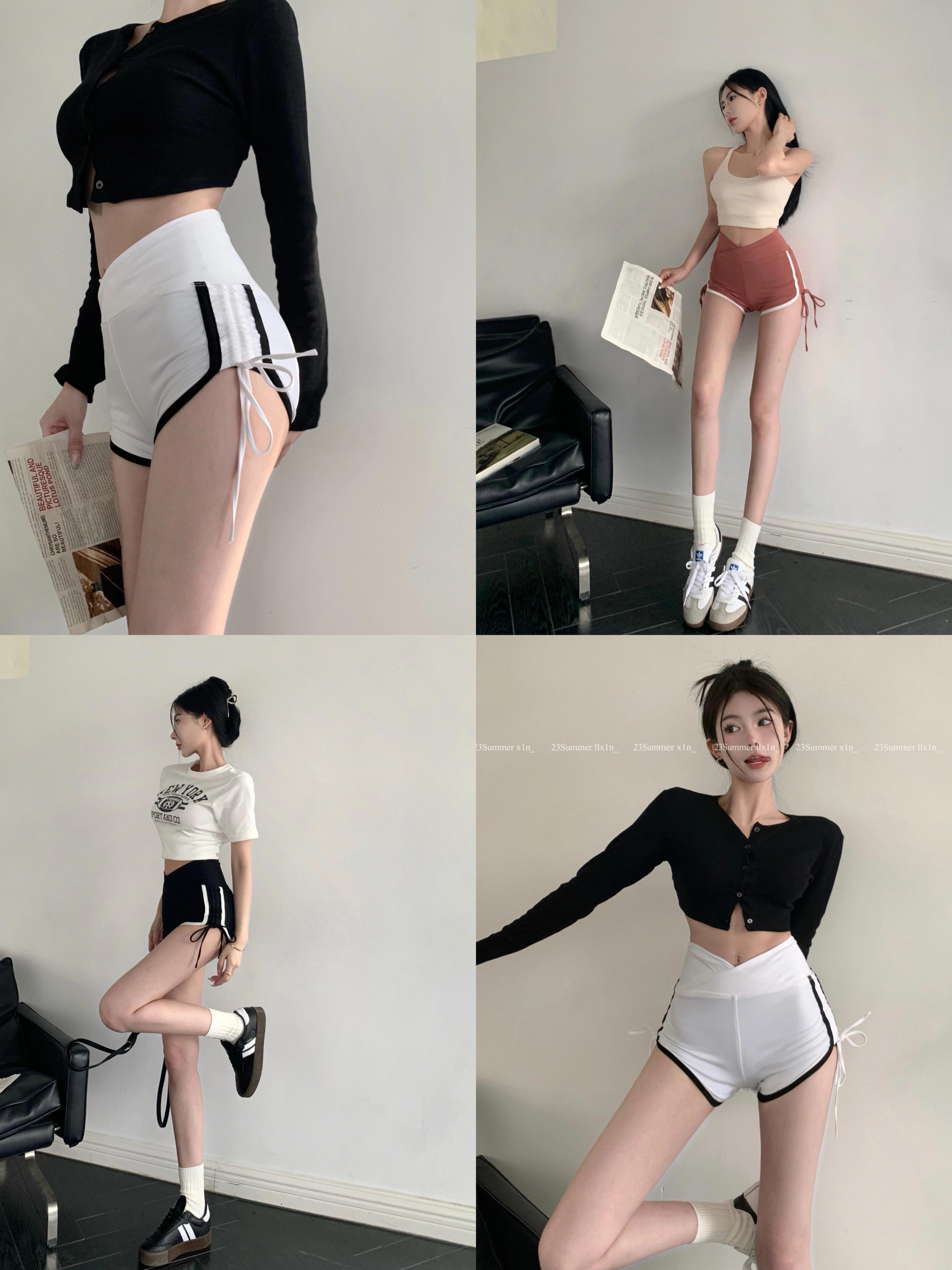 黒のカジュアルパンツ女性の夏ハイウエストタイトスリムショーツ巾着バッグヒップセクシーなスポーツパンツアウターウェア ハイウェスト ブラック サマー 夏物 ブルマー bstraw76644786039 | beaute25