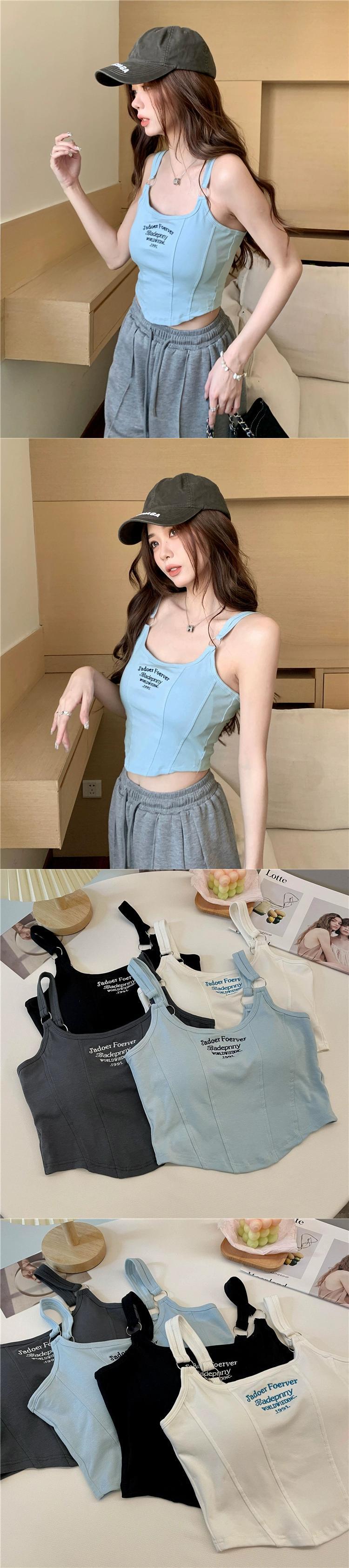 Spice Girl レター フィッシュボーン キャミソール レディース 夏 ピュア デザイア ノースリーブ スリム ショート セクション トップスとアウター付き サマー 夏物 bstraw84538514107 | beaute25