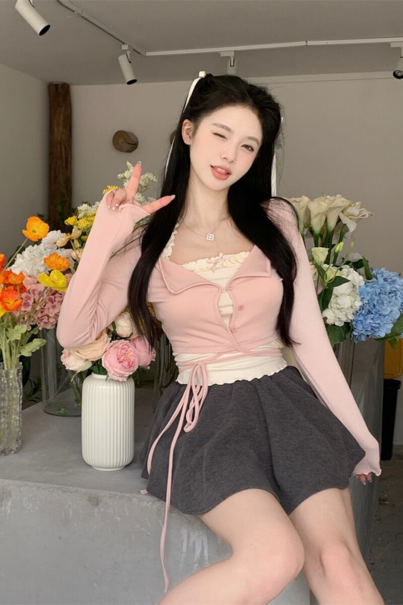 色:ピンクのカーディガン,ホルターベスト,グレーのチュチュ