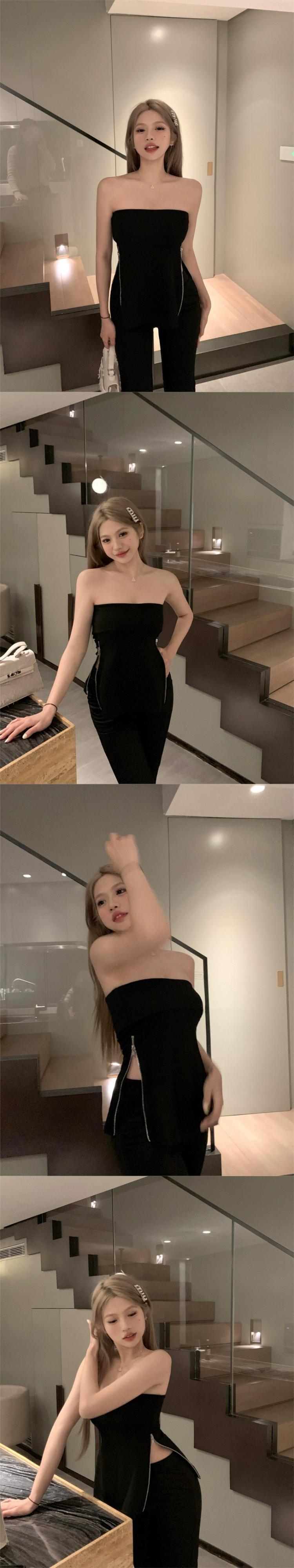 ピンクのジッパー ワンショルダー チューブ トップ 小さなベスト レディース 夏デザイン タイト フィット スリムフィット ショート トップ アウター 胸を包みます サマー 夏物 bstraw10591740881 | beaute25