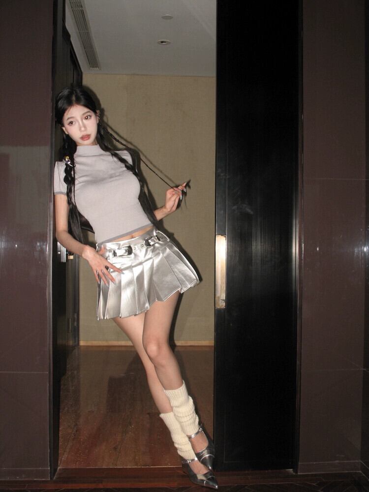 色:グレートップ,ベルト付きシルバースカート