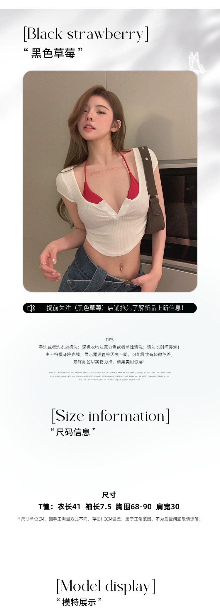 ホワイトタイトセクシーな半袖 tシャツの女性の夏の 2023 新しい薄いセクションハイウエストへそショートトップボトリングシャツ ハイウェスト サマー 夏物 bstraw25090890793 | beaute25