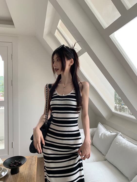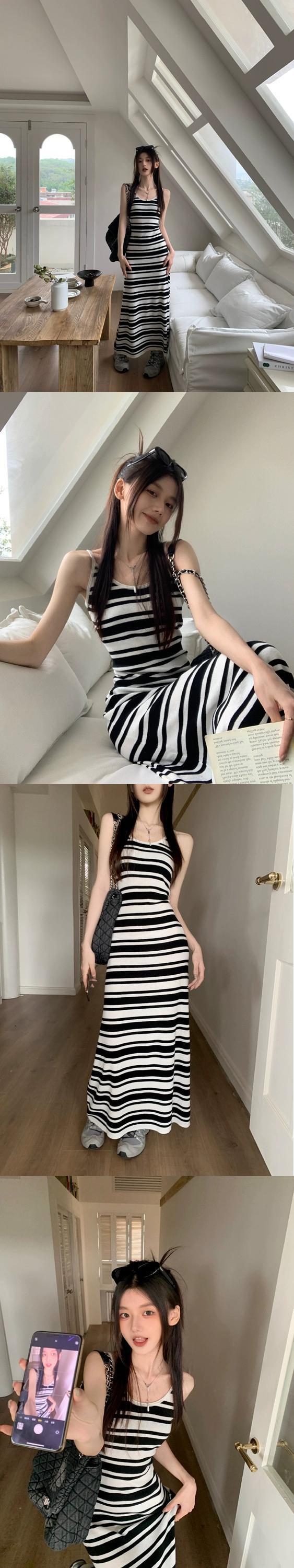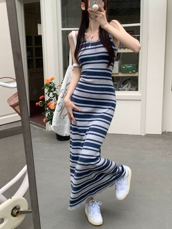 スパイスガールストライプレトロサスペンダードレス夏の純粋な欲望スカートノースリーブウエストスリムスリム薄型パッケージヒップドレス サマー 夏物 ピュア bstraw50899496120 | beaute25