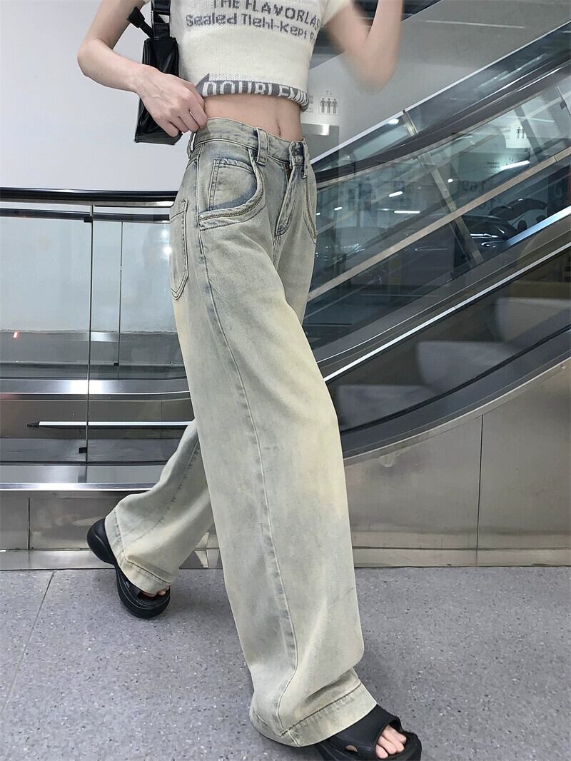 レトロオールドウォッシュストレートジーンズレディース2023年夏新作ルーズハイウエストオールマッチワイドレッグパンツズボン ハイウェスト サマー 夏物 bstraw2741401705 | beaute25