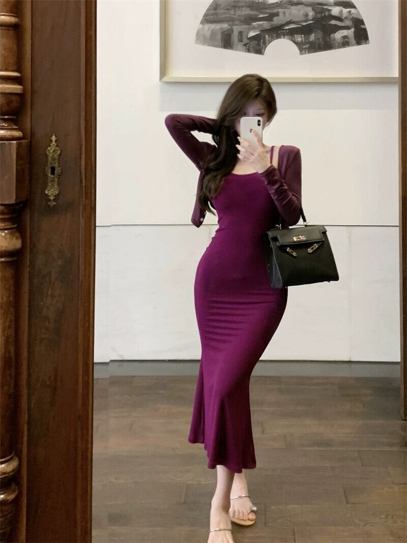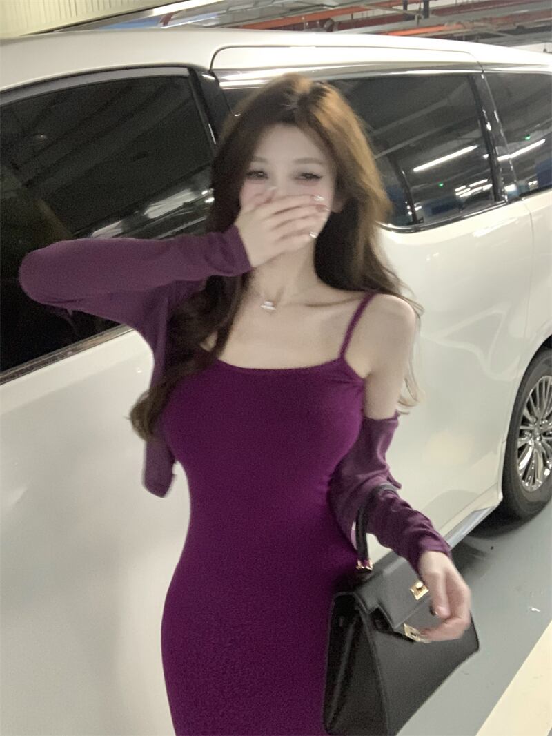 純粋な欲望のセクシーな紫色のサスペンダードレス女性の夏のウエストウエストバックレスフィッシュテールバッグヒップスカート気質ハイエンドロングスカート サマー 夏物 パープル bstraw97484539971 | beaute25
