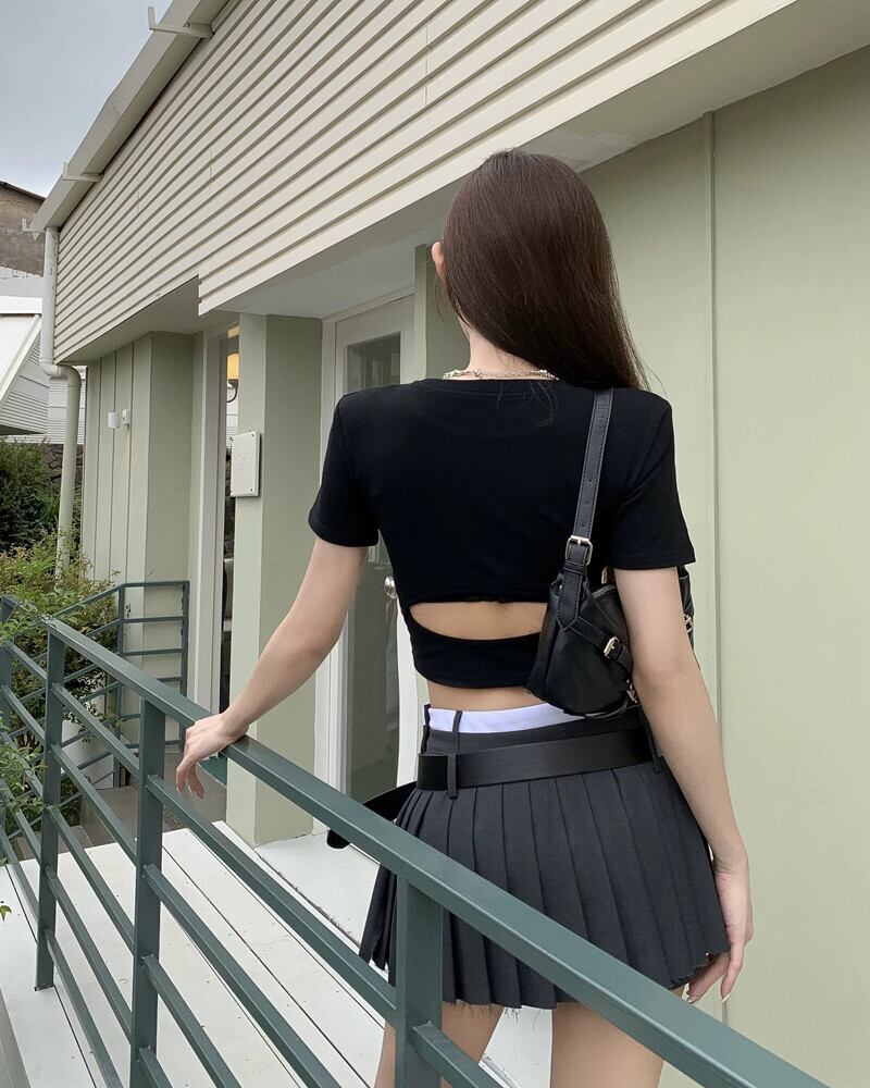 黒中空ショルダーパッド半袖 Tシャツ女性の夏の純粋な欲望へそを露出セクシーなスリムショートトップボトリングシャツ ブラック サマー 夏物 ピュア bstraw34704421223 | beaute25