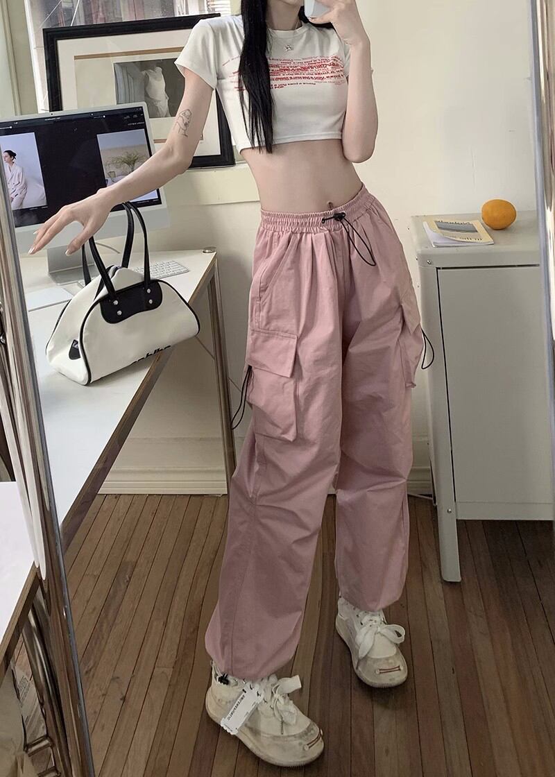 アメリカンレトロツーリングカジュアルパンツレディース夏ハイウエストルーズストレートワイドレッグパンツクロージングビームスポーツパンツズボン ハイウェスト サマー 夏物 bstraw67563455916 | beaute25