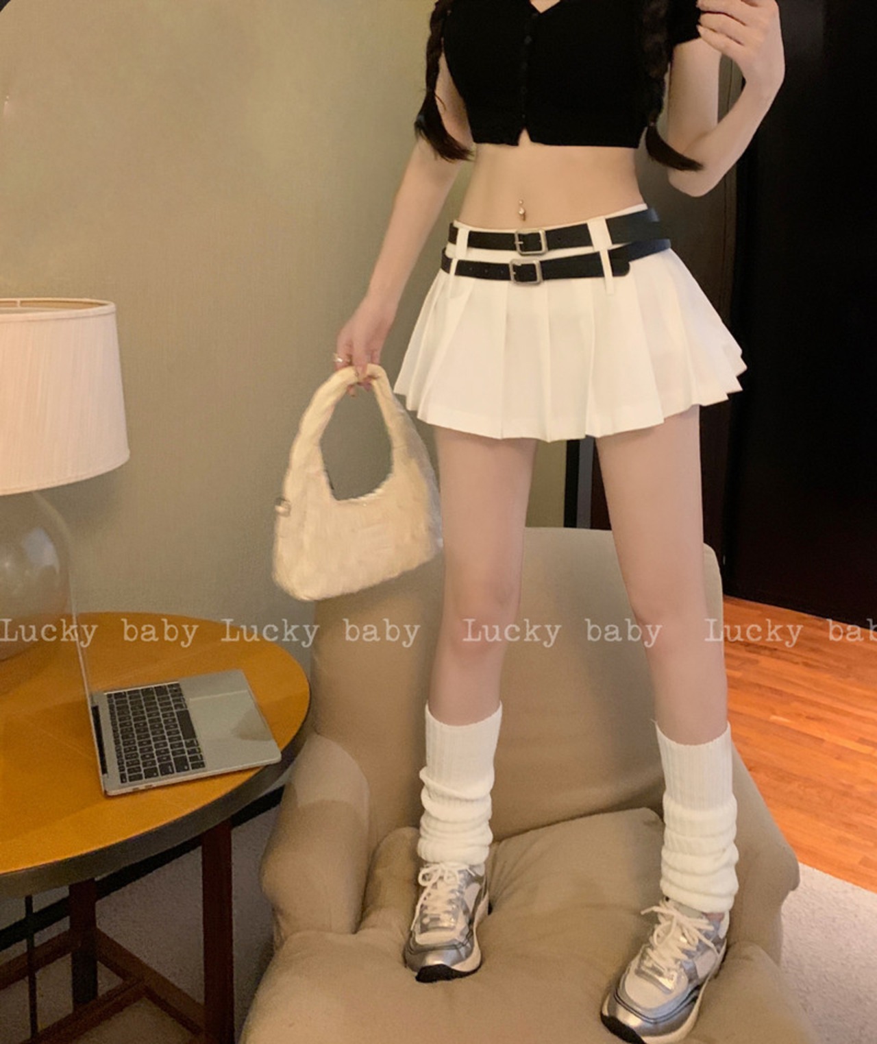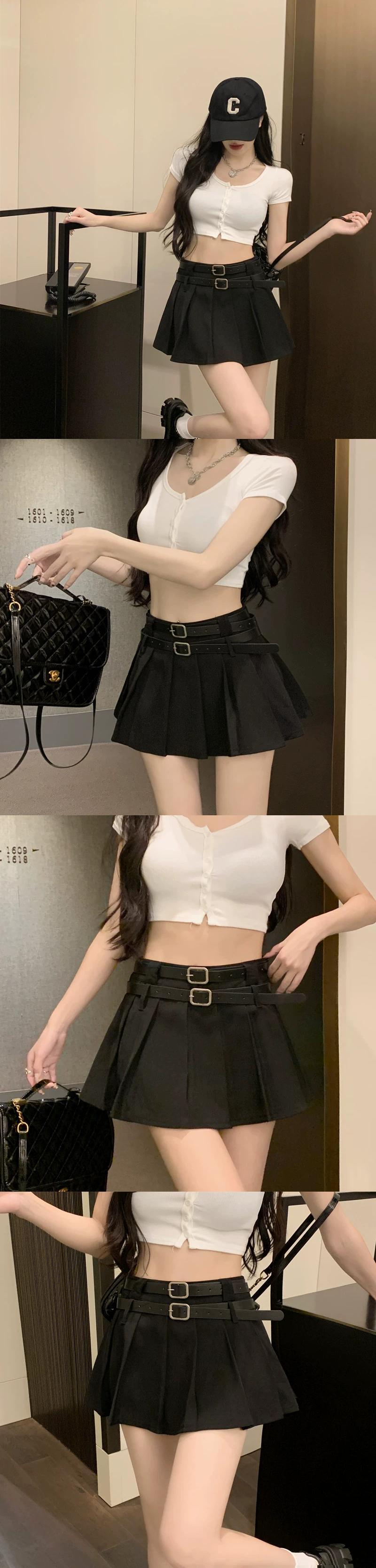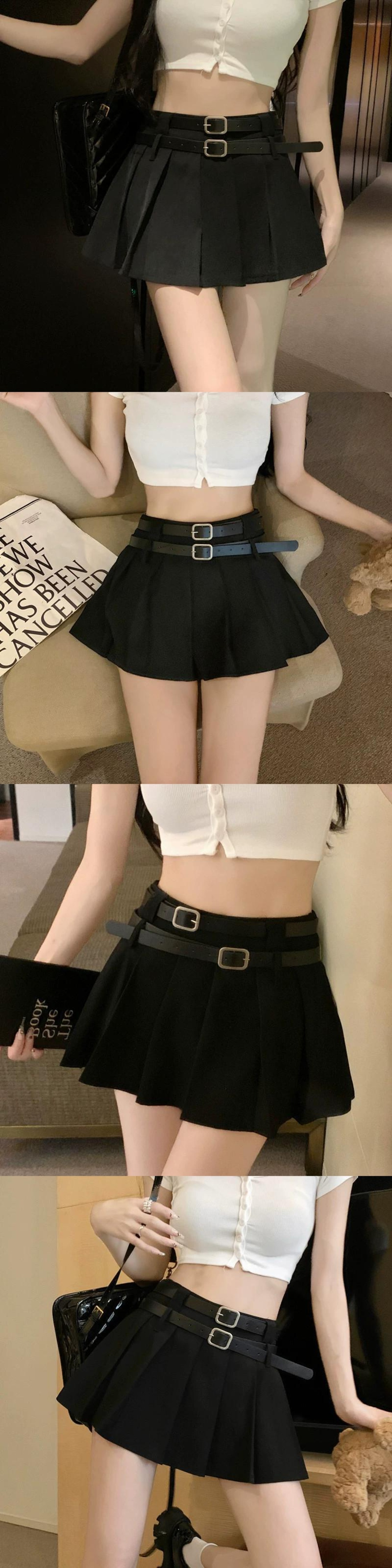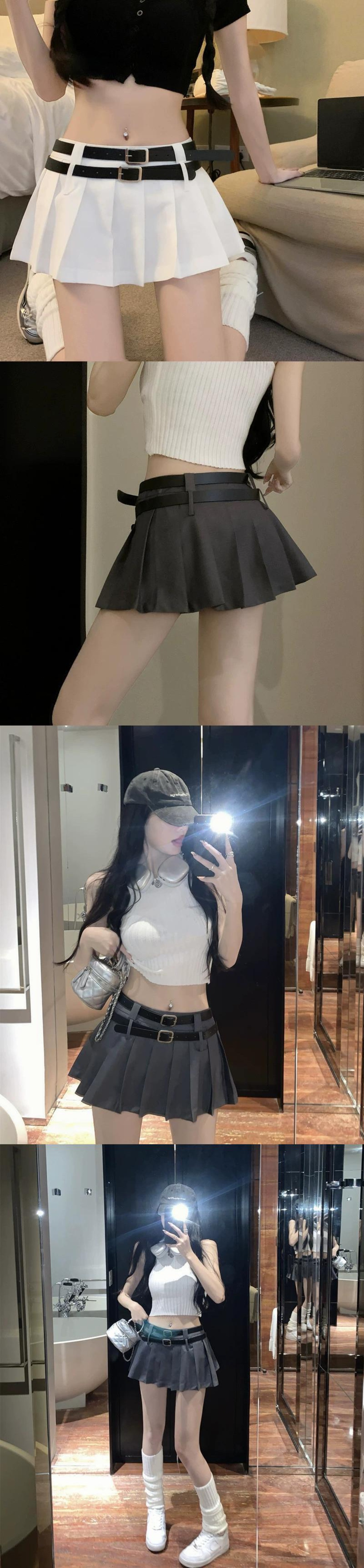ホワイトダブルベルトjkスカート女性の夏のカレッジスタイルキュロットスカートハイウエストスカートセクシーなプリーツスカートスカート ハイウェスト サマー 夏物 ハーネス bstraw31653452083 | beaute25