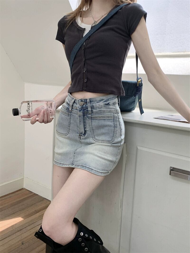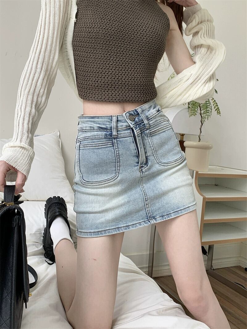 アメリカンレトロデニムスカート女性の夏のライトカラー防光スカートハイウエスト薄いスカートパッケージヒップスカートスカート ハイウェスト サマー 夏物 bstraw14705848364 | beaute25