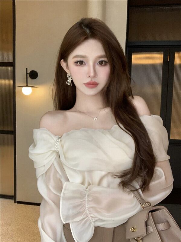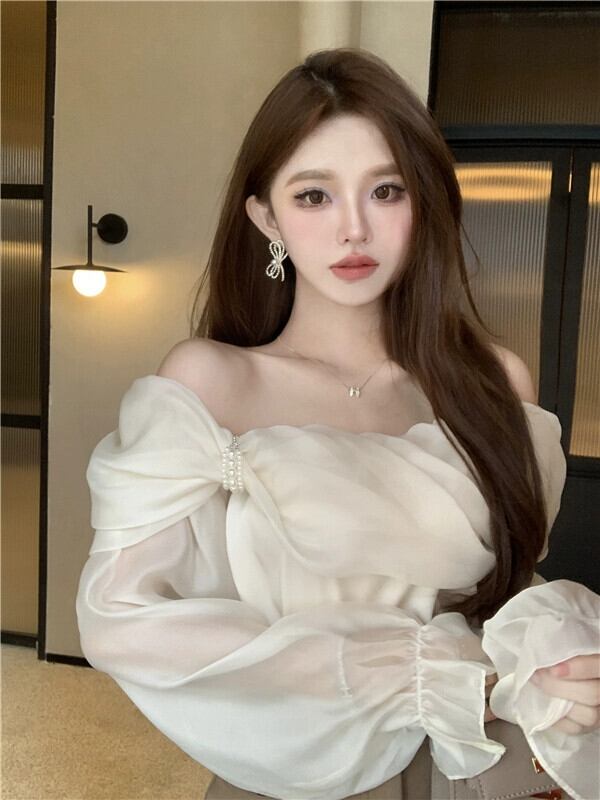 優しいワンショルダー長袖シャツレディース夏甘くスリムなショートシャツデザインセンスニッチオフショルダートップ ロング 大人ガーリー スウィート キュート カジュアル サマー 夏物 bstraw55800582854 | beaute25