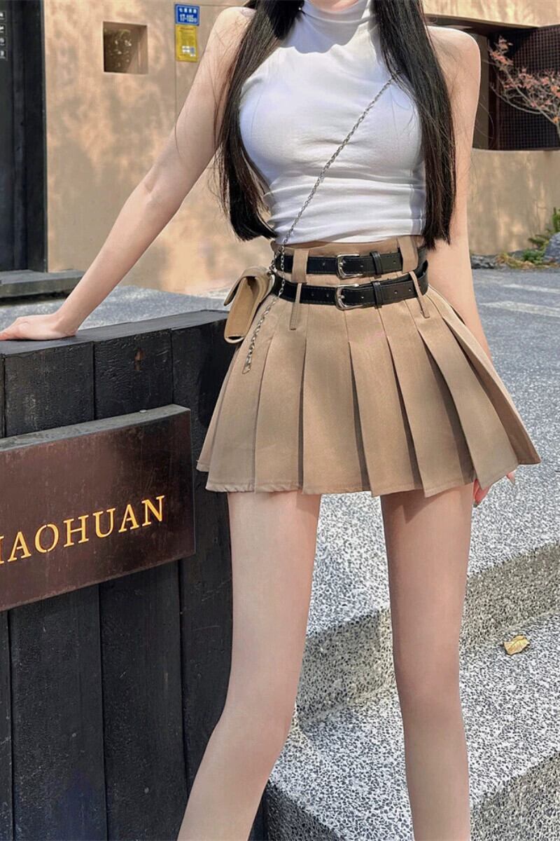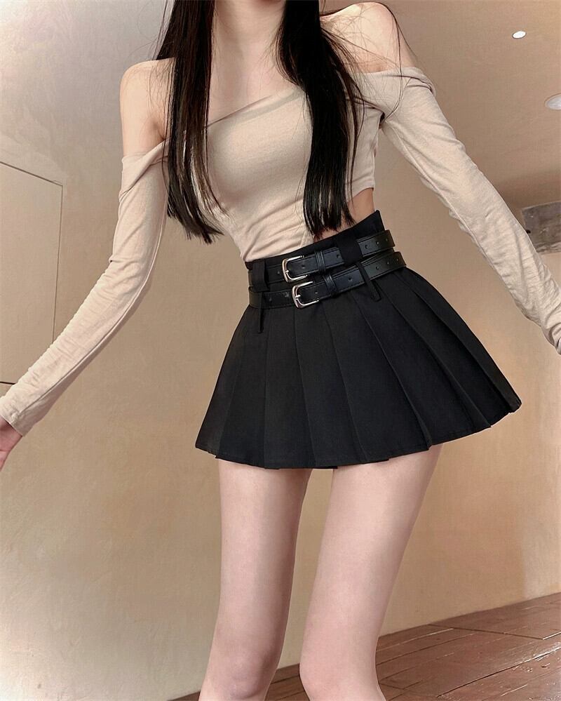 ホットカレッジスタイル jk スカート女性の夏のダブルベルト小男プリーツスカート一言ハイウエストセクシーなスカート ハイウェスト サマー 夏物 ハーネス bstraw19712281737 | beaute25