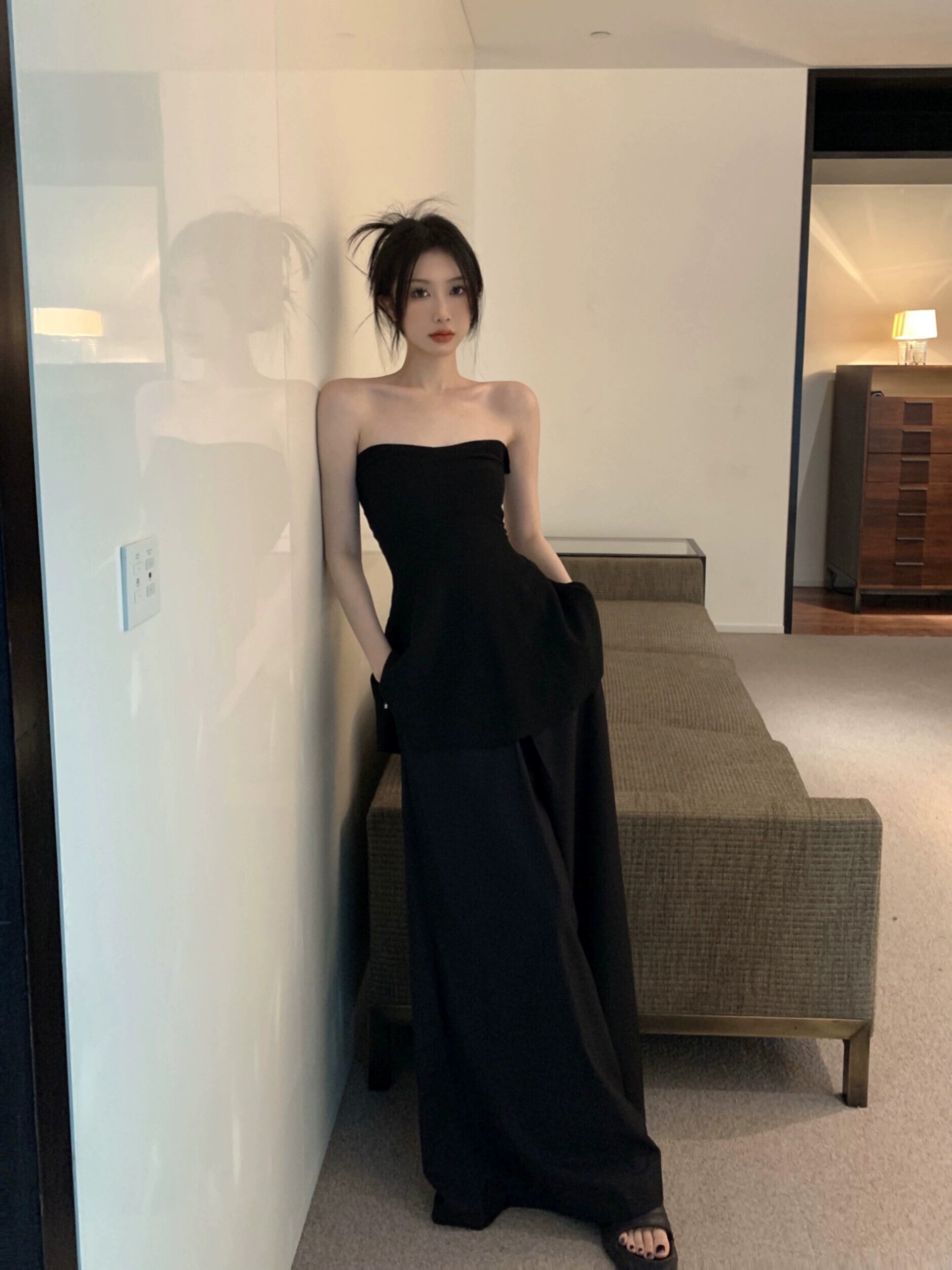 色:ブラックチューブトップドレス,白いチューブトップドレス,黒いズボン,グレーパンツ