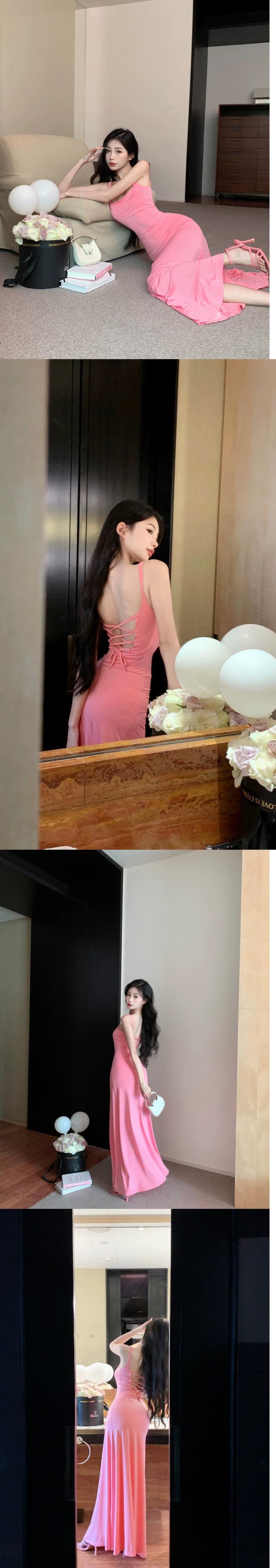 スイート スパイス ガールズ スリング ドレス婦人服夏 2023 純粋な欲望セクシーな背中の開いたストラップ スカート ノースリーブ ロング ドレス 大人ガーリー スウィート キュート カジュアル サマー 夏物 ピュア bstraw14203733486 | beaute25
