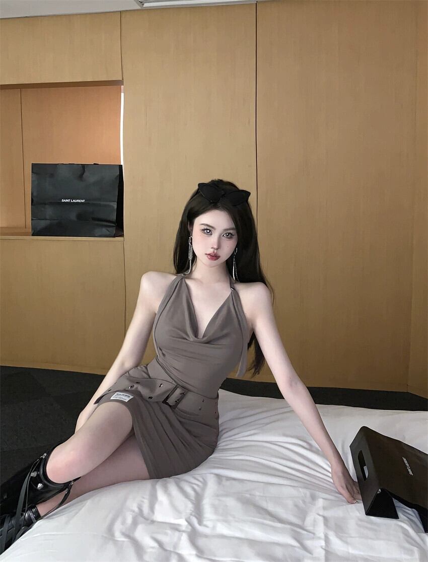 純粋な欲望スタイルニットホルターネックストラップドレス女性の夏の 2023 新しいセクシーなウエストスカートバッグヒップスカートスカート サマー 夏物 bstraw31181541018 | beaute25