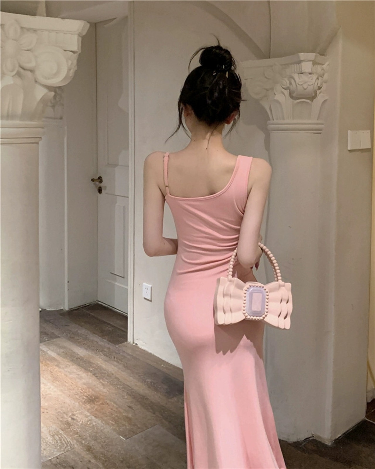 胸パッド付きフレンチスタイルサスペンダードレス女性の夏のウエストセクシーなバッグヒップマーメイドスカート気質ハイエンドミドル丈スカート サマー 夏物 bstraw66348270838 | beaute25