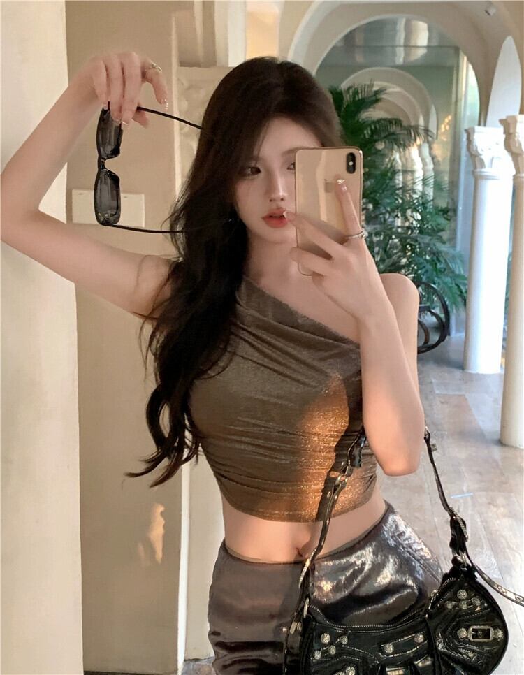 甘い女の子セクシーな斜め肩キャミソール婦人服夏の純粋な欲望自己修養オフショルダーショートクロップトップス 大人ガーリー スウィート キュート カジュアル サマー 夏物 ピュア bstraw81685912270 | beaute25