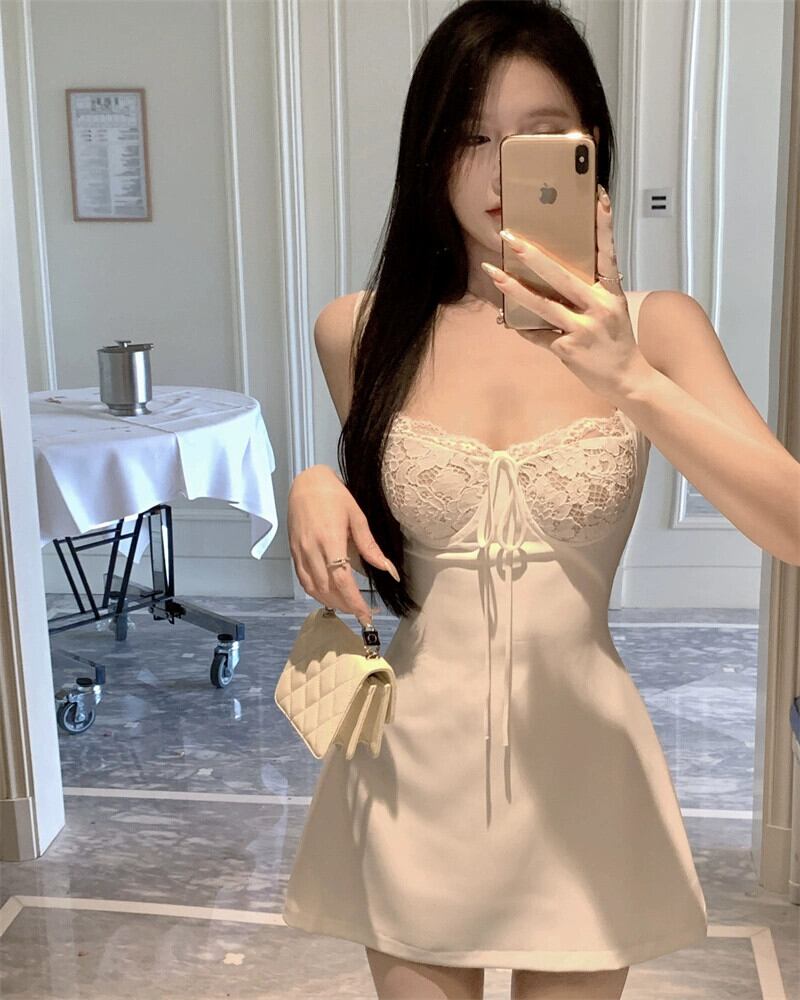 フレンチスイートレースステッチスリングドレス女性の夏のウエスト痩身セクシーなスカート純粋な欲望風aラインスカート 大人ガーリー スウィート キュート カジュアル サマー 夏物 ピュア bstraw49575984390 | beaute25