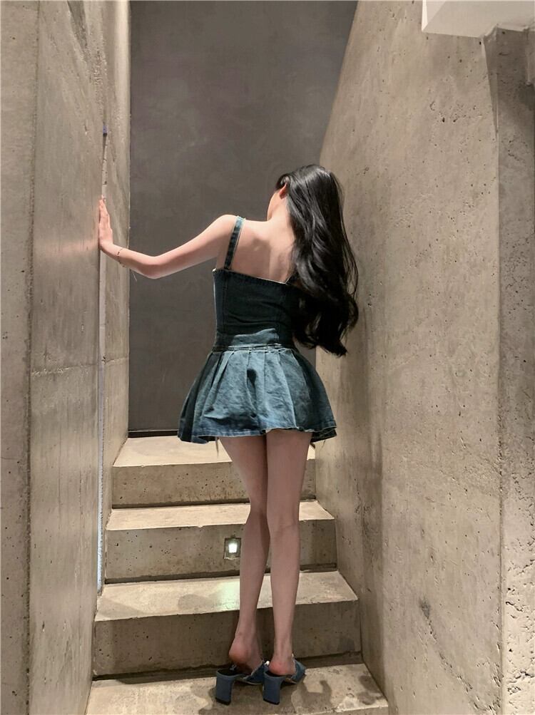 甘いクールデニムサスペンダードレス女性の夏の 2023 新しいスカートタイトで薄いノースリーブウエストウエストスカート 大人ガーリー スウィート キュート カジュアル サマー 夏物 bstraw64434636088 | beaute25