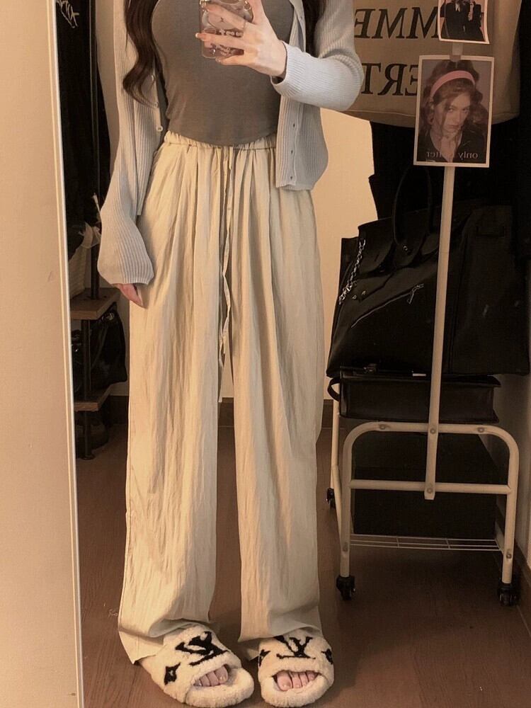 弾性ウエスト巾着ドレープパンツ女性の夏のウエストプリーツルーズ多彩なストレートワイドレッグパンツズボン エラスティック 伸縮 サマー 夏物 ワイドパンツ bstraw35422171032 | beaute25