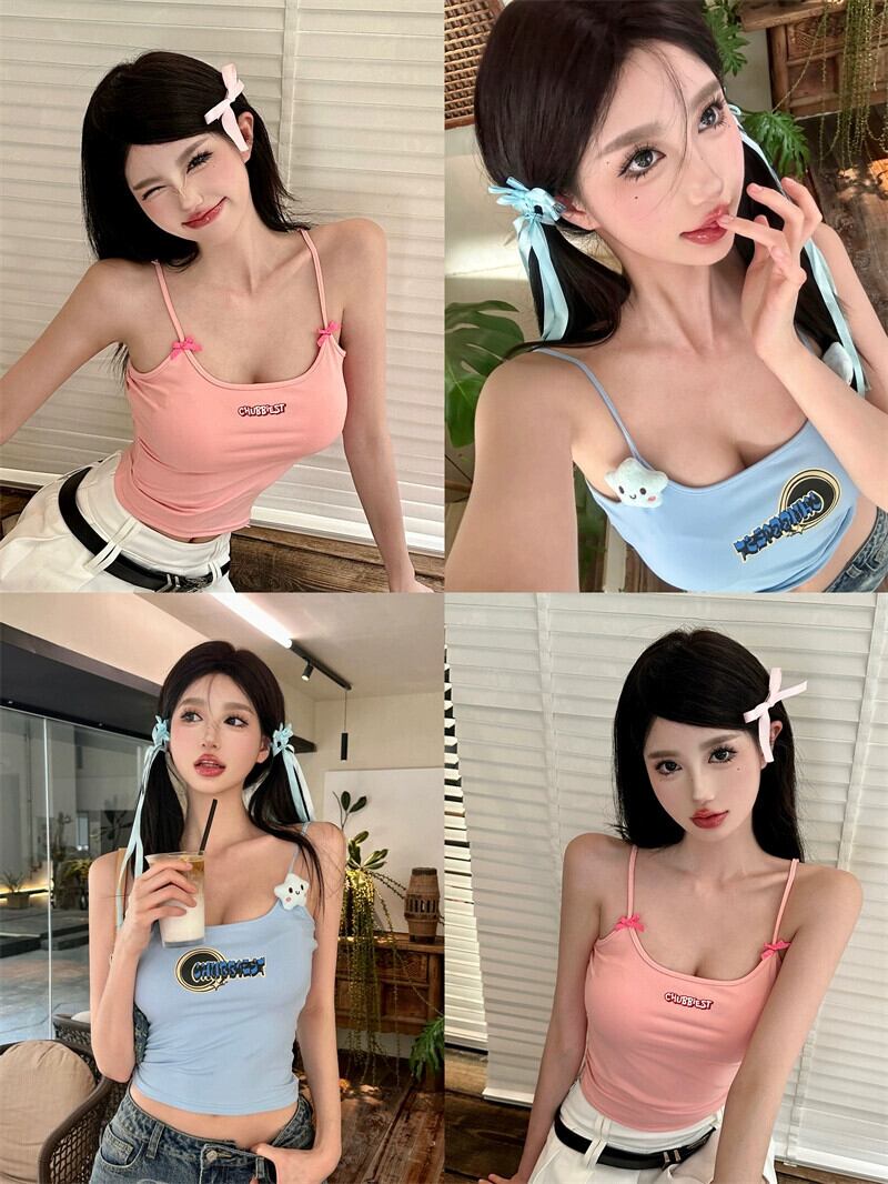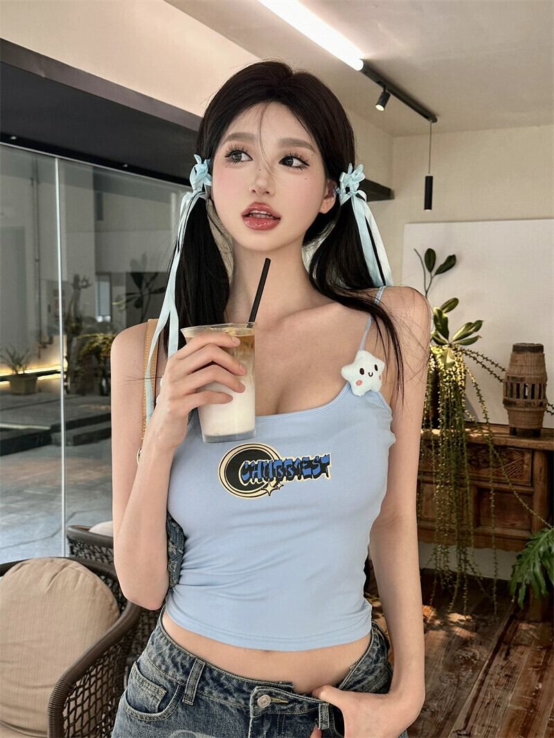 純粋な欲望スタイルのフランスの小さなキャミソール女性の夏甘いブルースタータイトフィットショートアウタートップを着ています 大人ガーリー スウィート キュート カジュアル サマー 夏物 bstraw92777165540 | beaute25