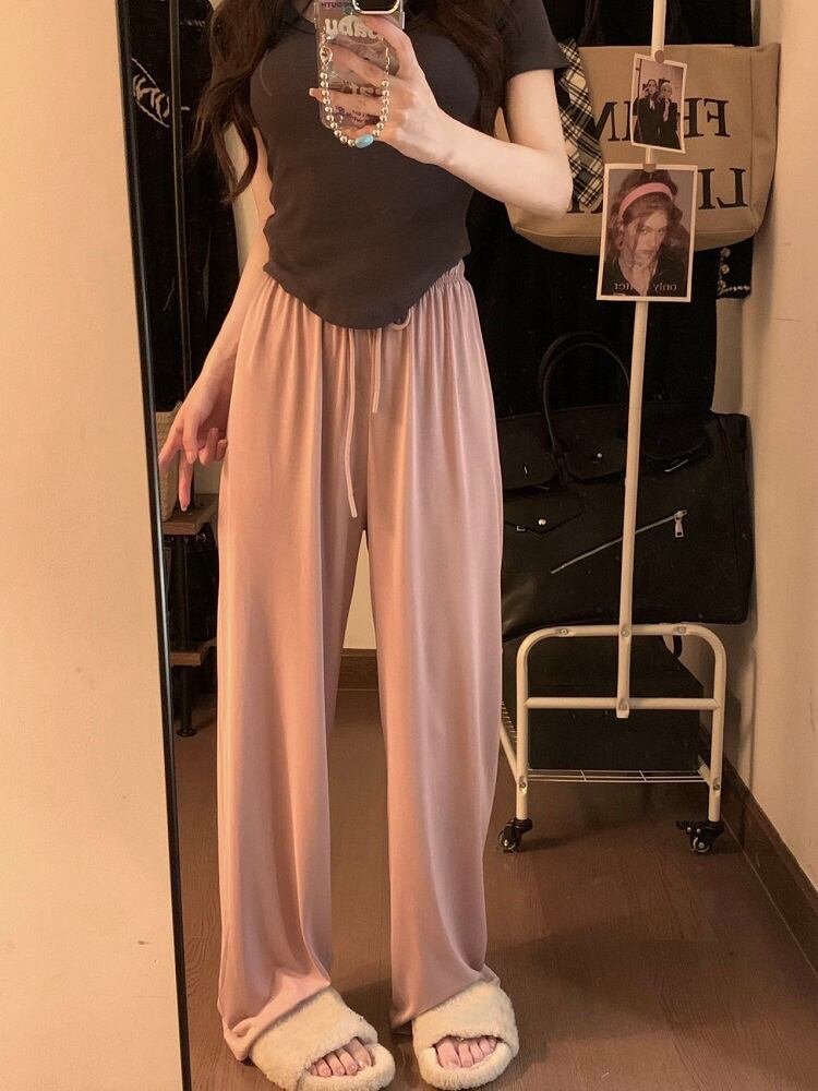 弾性ウエスト巾着ドレープカジュアルパンツ女性の夏の 2023 新しいルーズオールマッチストレートワイドレッグパンツズボン エラスティック 伸縮 サマー 夏物 bstraw92563074052 | beaute25