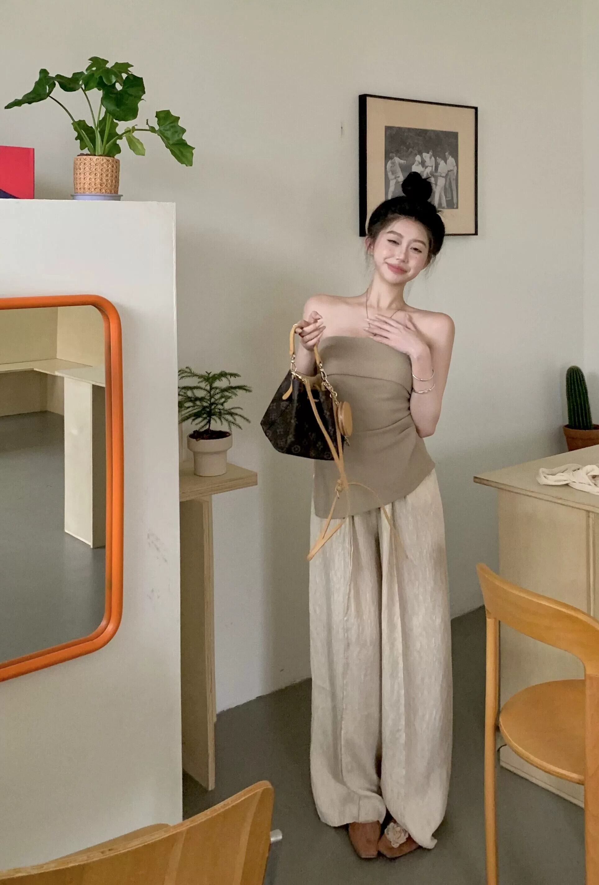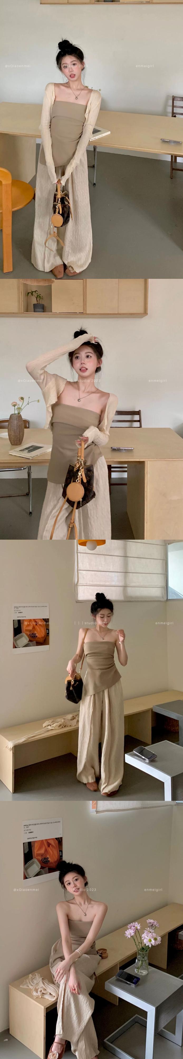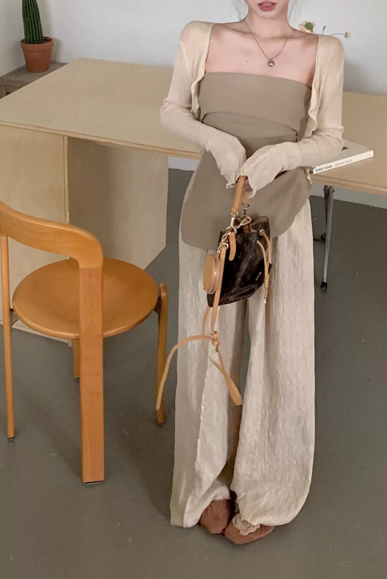 色:アプリコットカーディガン,チューブトップ,アプリコットワイドレッグパンツ
