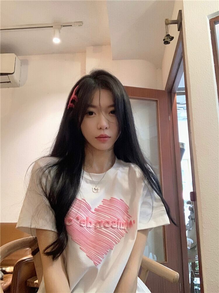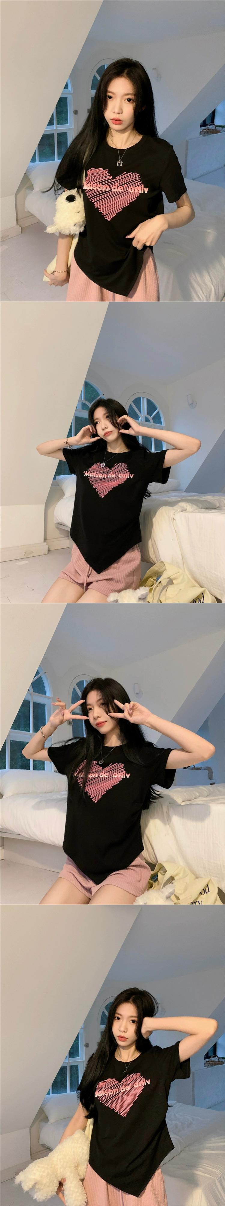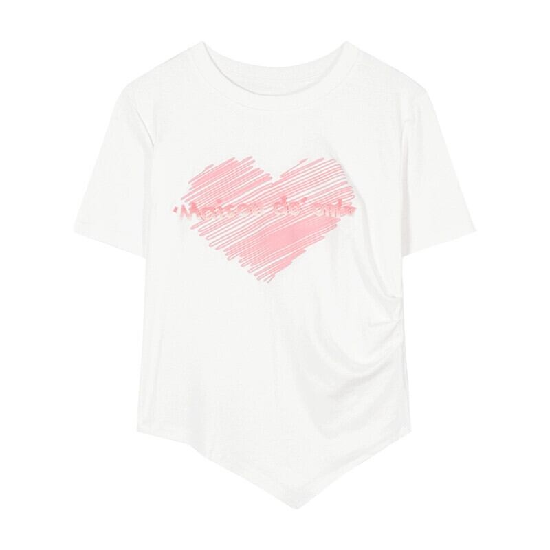 バージョン半袖フロントショルダー T シャツ女性の 2023 夏の新しい白文字の愛の刺繍ルーズ不規則なトップ ホワイト サマー 夏物 Tシャツ bstraw74353576211 | beaute25