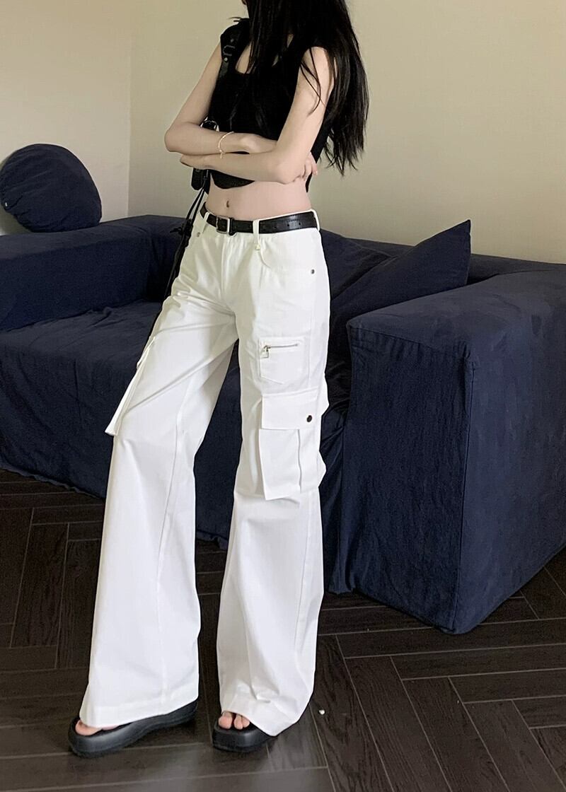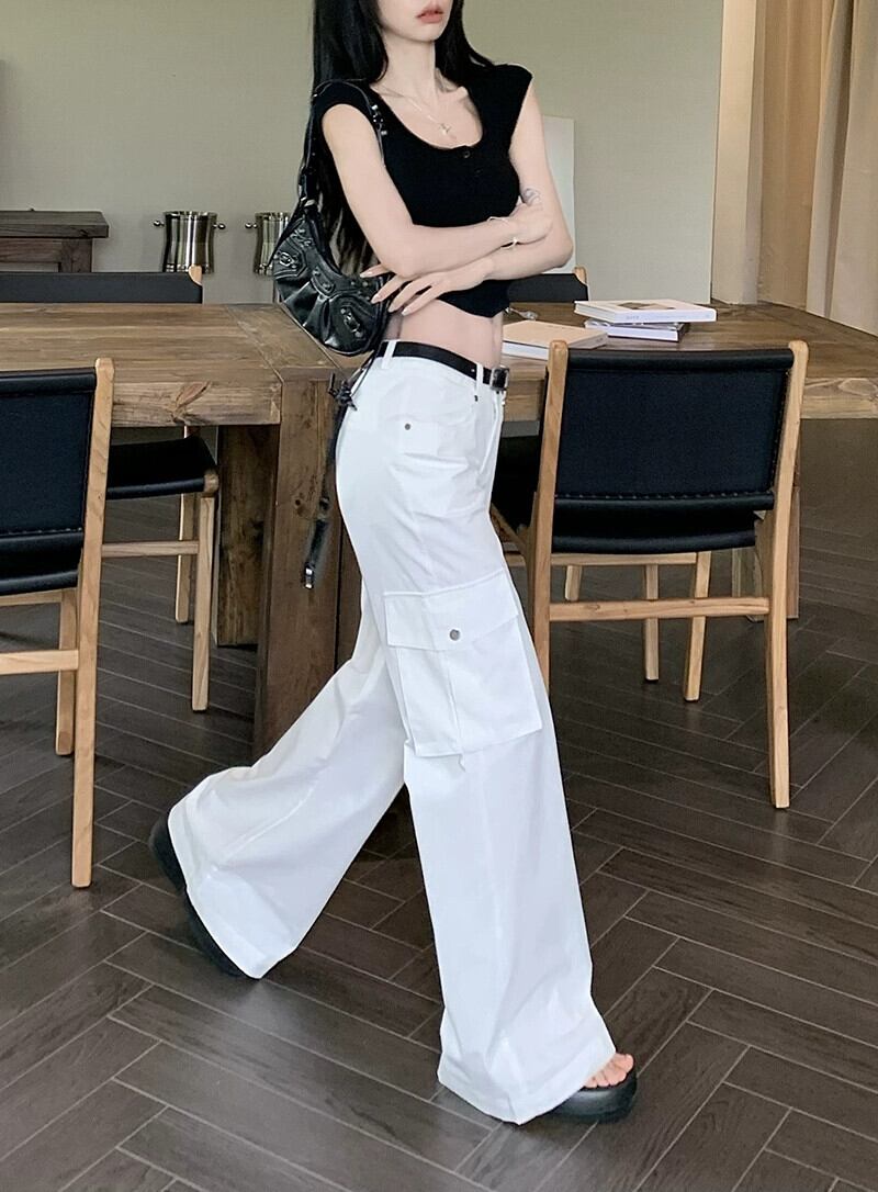 アメリカンレトロホワイトオーバーオールカジュアルパンツ女性の夏ルーズマイクロフレアパンツストレートレッグスリムモップパンツ レッド サマー 夏物 bstraw25894125529 | beaute25