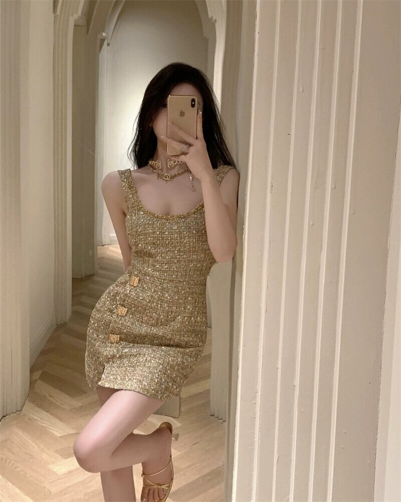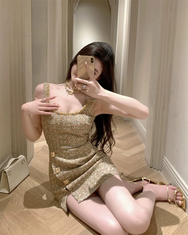 小さな香りの風スクエアカラースリットサスペンダードレスレディースサマースカートセレブ気質ハイエンドパッケージヒップスカートショートスカート 夏物 スクウェア bstraw84759490593 | beaute25