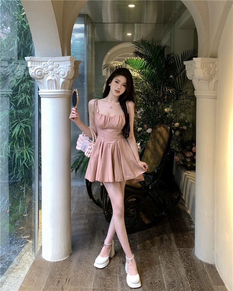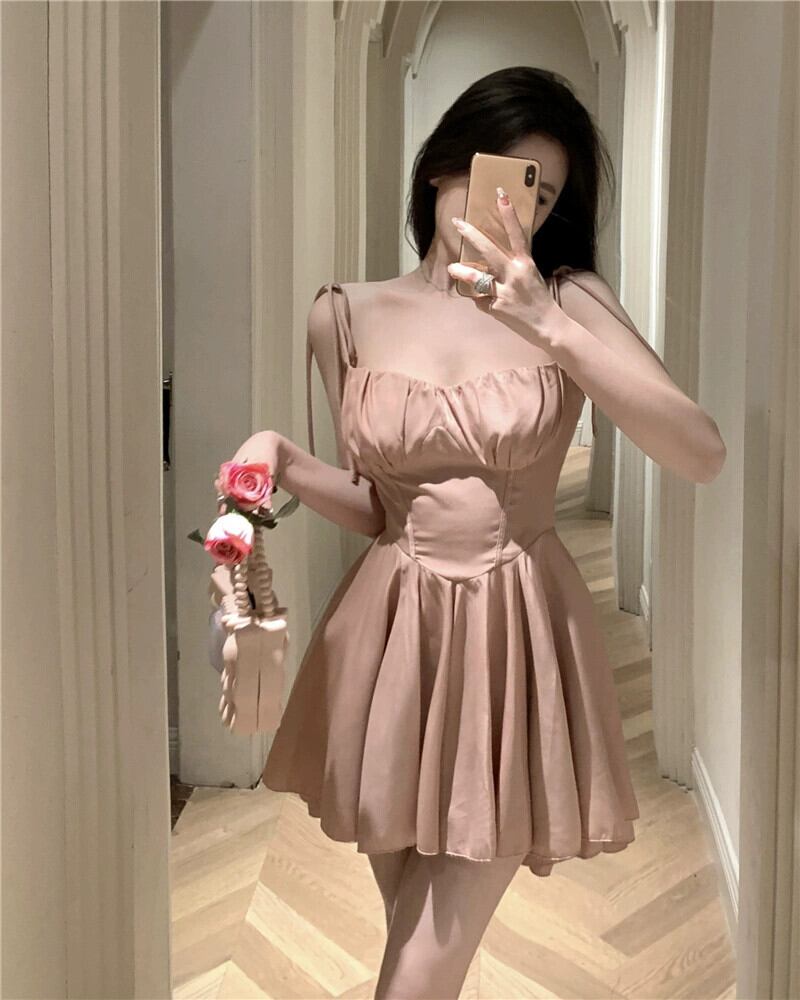 純粋な欲望甘いウエストノースリーブサスペンダードレス女性の夏のタイアップaラインスカートオフショルダーシーサイドホリデースカート 大人ガーリー スウィート キュート カジュアル サマー 夏物 bstraw19627630923 | beaute25
