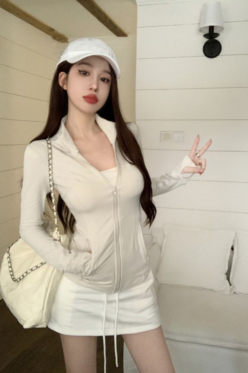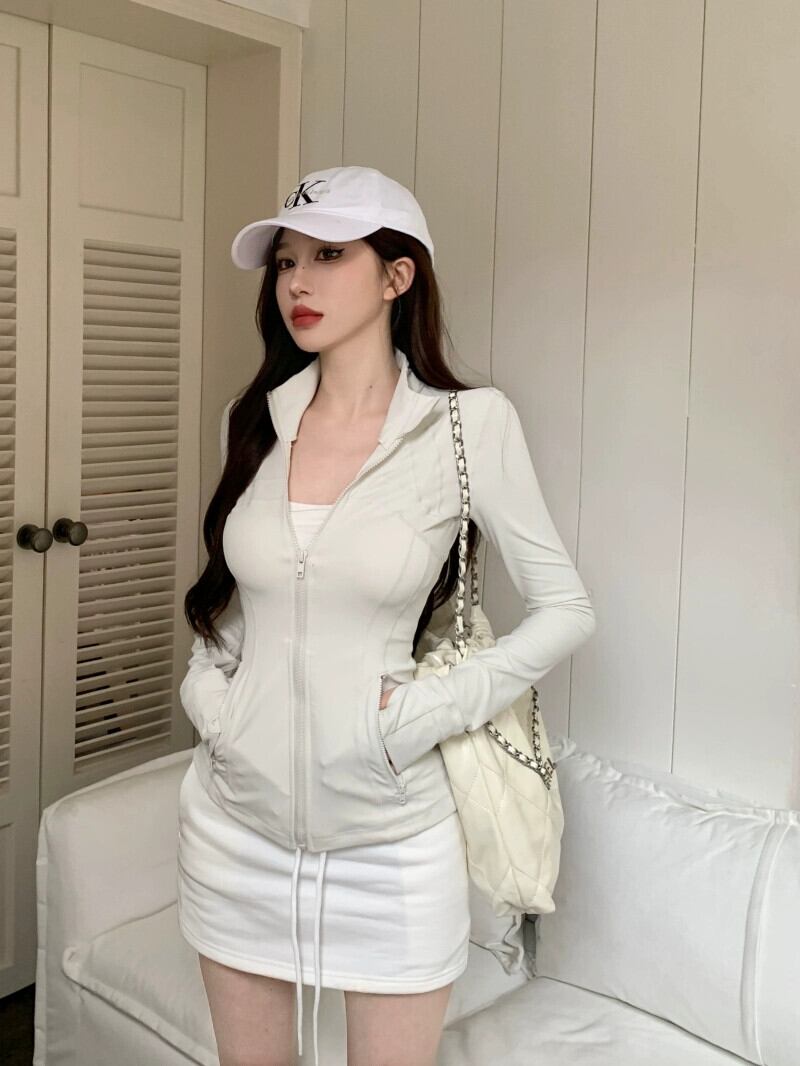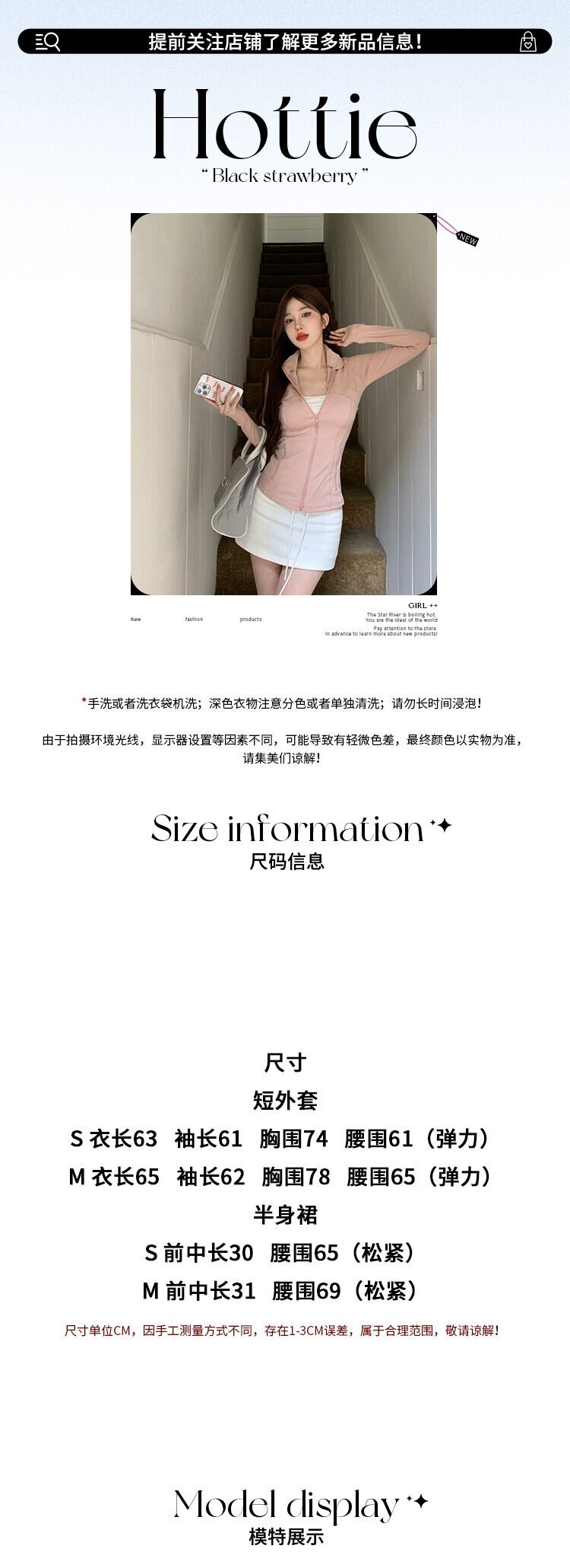 色:ピンクのジャケット,白いコート,白いスカート,白い中