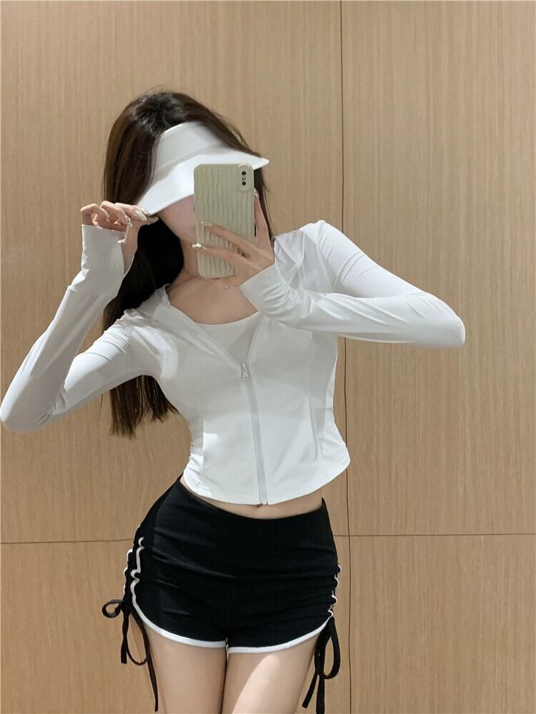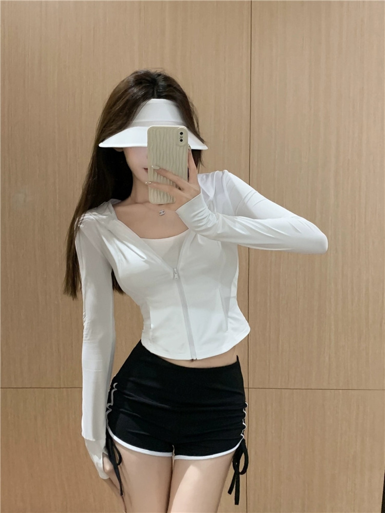 白いフード付きカーディガンジャケット女性の夏薄いセクションデザインセンスニッチスリムショートタイト気質日焼け防止トップ ホワイト サマー 夏物 bstraw25171720870 | beaute25