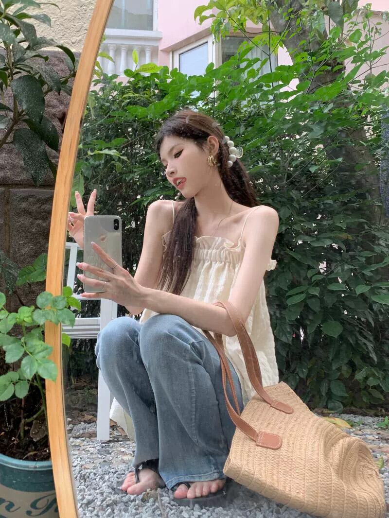 アプリコットスイート キャミソール レディース 夏 フレンチスイート タイ風 ワンショルダー 木耳トップ アウター 大人ガーリー スウィート キュート カジュアル サマー 夏物 bstraw94503269841 | beaute25