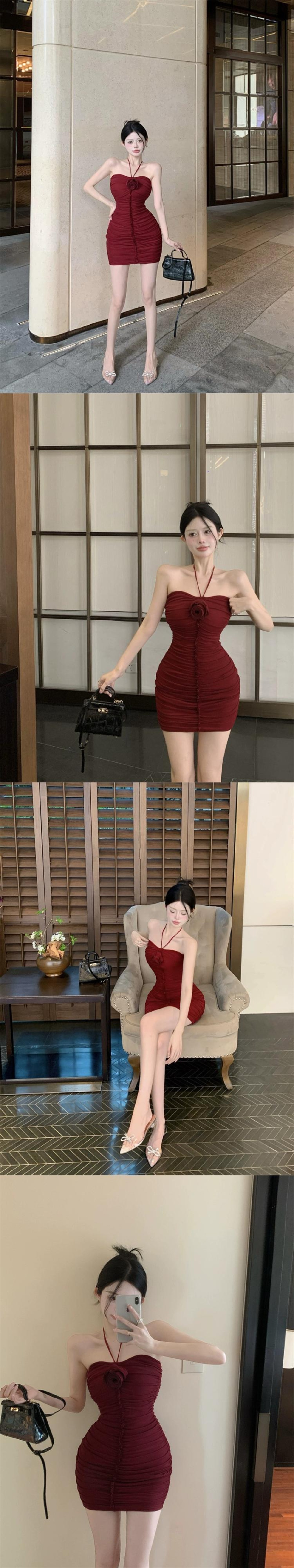 純粋な欲望の花ぶら下げネックサスペンダードレス女性の夏プリーツウエストセクシーなバッグヒップスカートフランスの気質スカート サマー 夏物 フラワーデザイン bstraw88735945422 | beaute25