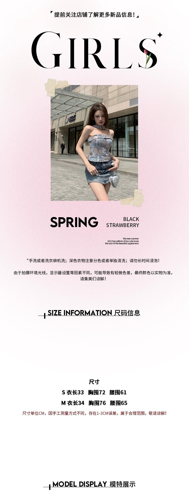 甘いセクシーなワンショルダーデニムぶら下げネックストラップ小さなベスト女性の夏のジッパー純粋な欲望ショートトップアウター 大人ガーリー スウィート キュート カジュアル サマー 夏物 ピュア bstraw97540125137 | beaute25