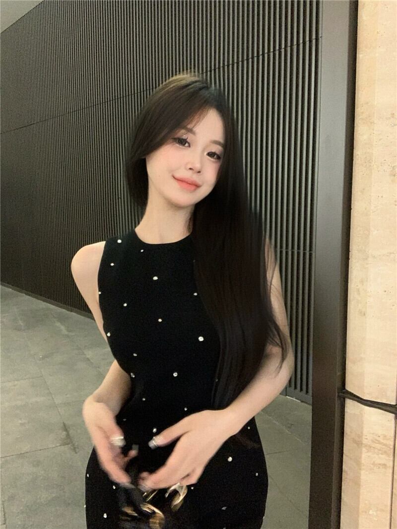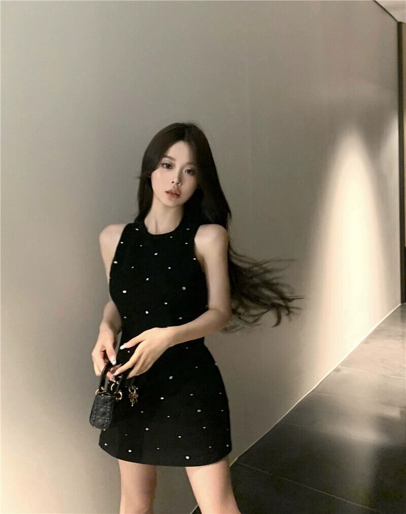 夏背中の開いたセクシーなアセテートベストドレス女性スリムストラップレスノースリーブ A ラインスカートフレンチブラックスカート サマー 夏物 Aライン bstraw37896646509 | beaute25