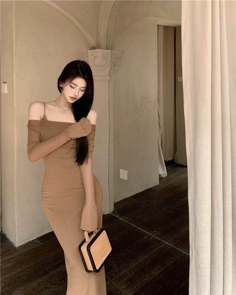 純粋な欲望のスタイルのセクシーなサスペンダードレス女性の夏の薄いセクションインペリアルシスタースカートメッシュ長袖ヒップスカートマーメイドドレス ロング サマー 夏物 bstraw69866940717 | beaute25