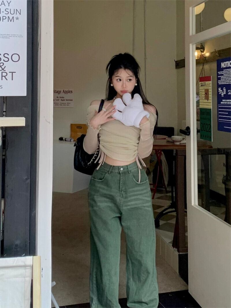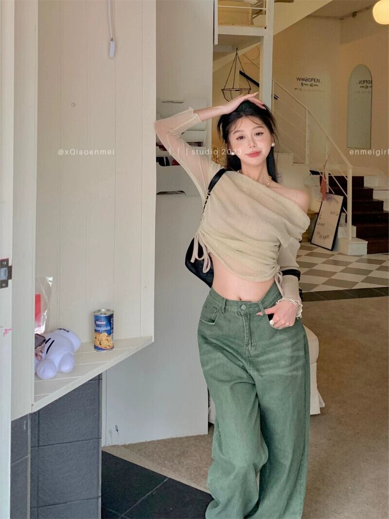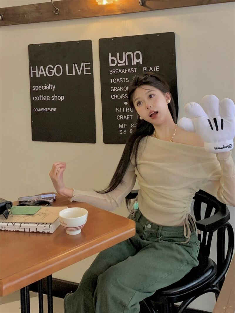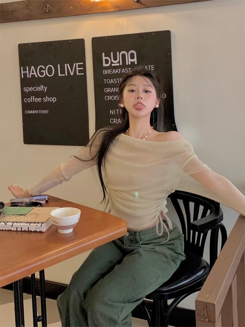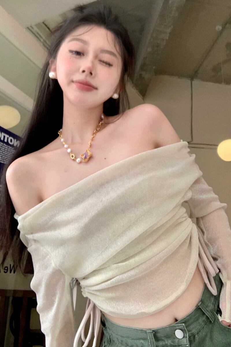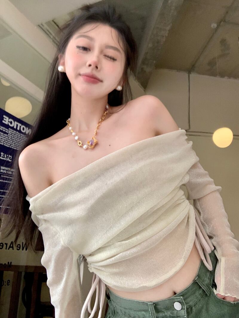ワンショルダー 薄手 長袖 Tシャツ レディース 2023年夏新作 ストラップレス 巾着トップ チューブトップ 2点セット ロング サマー 夏物 bstraw33304271818 | beaute25
