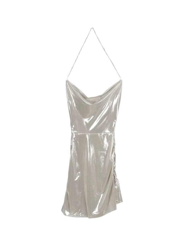 純粋な欲望スタイル V ネックホルターネックドレス女性の夏のチェーン折り目気質ハイエンドウエストウエストホルタースカートショートスカート サマー 夏物 Vネック bstraw41169145147 | beaute25