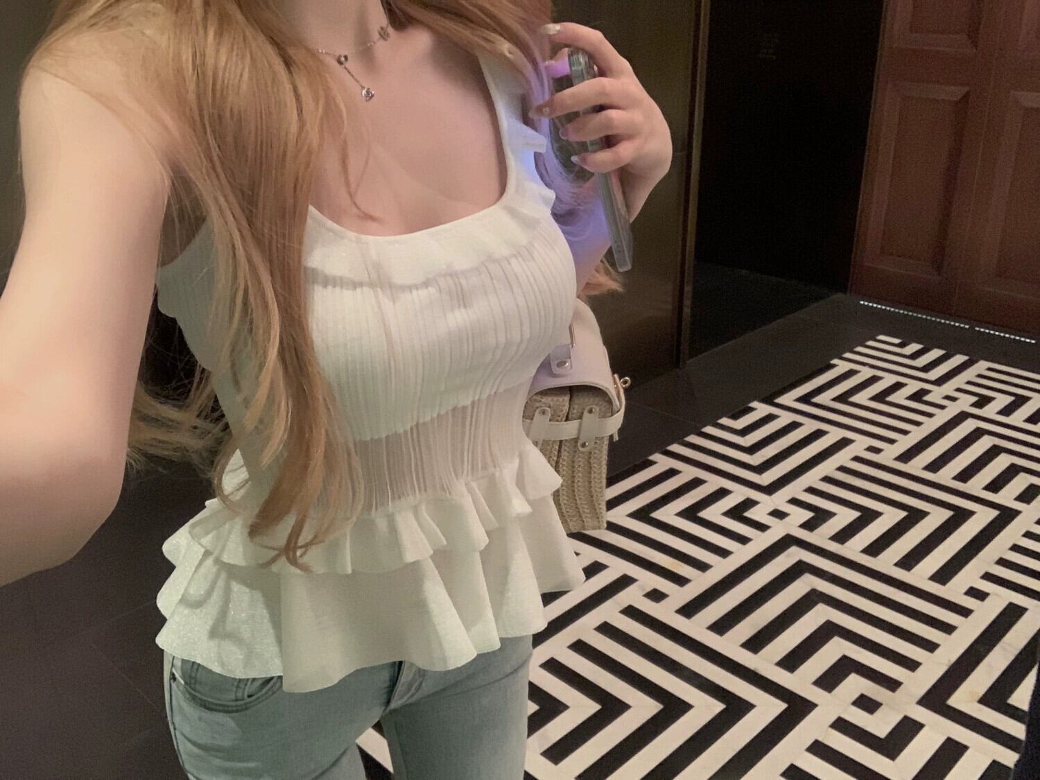 白いシースルーステッチの小さなキャミソール女性の夏の自己修養の内側とフリルの背中の開いたショートトップスは外側で着用します ホワイト サマー 夏物 bstraw85115439368 | beaute25