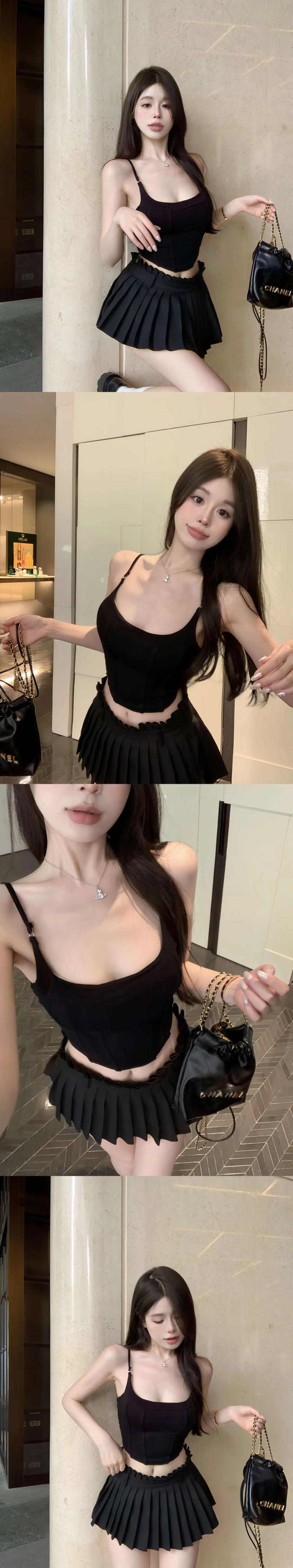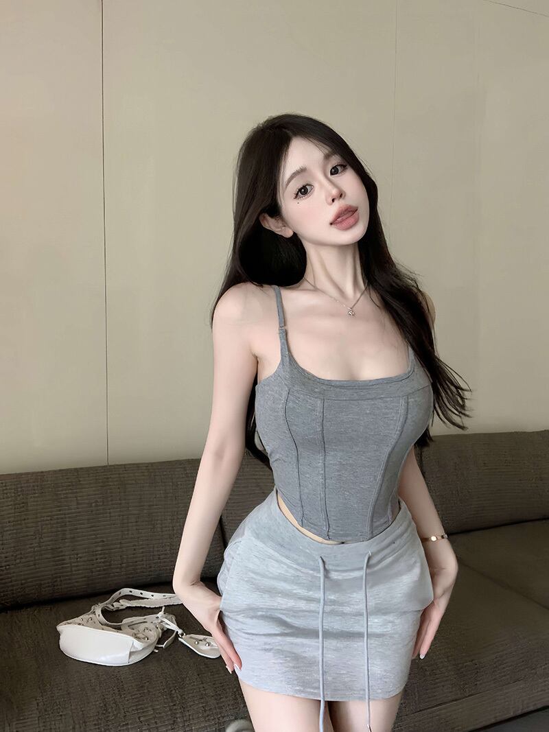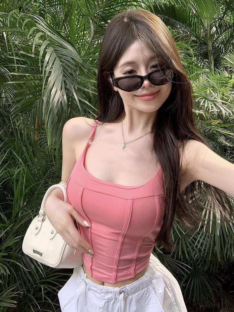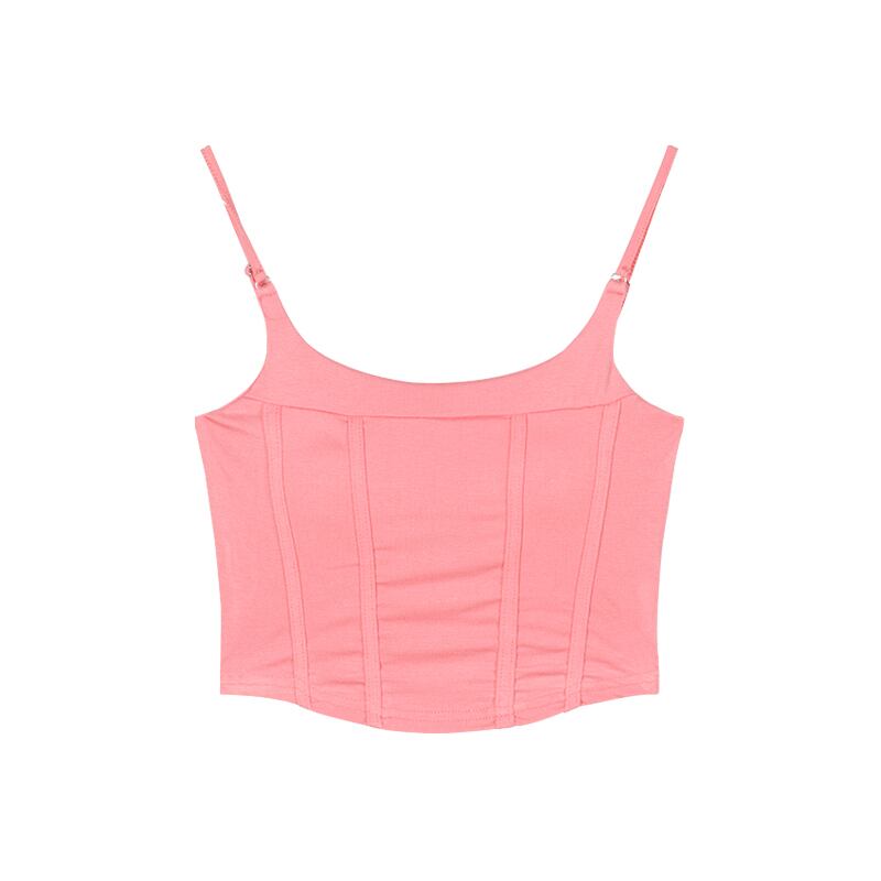 胸パッド付きピンクのフィッシュボーン小さなベスト女性の夏のインナーとアウターウェア不規則なタイトフィットショートスクエアカラーキャミソールトップ サマー 夏物 スクウェア bstraw92733666094 | beaute25