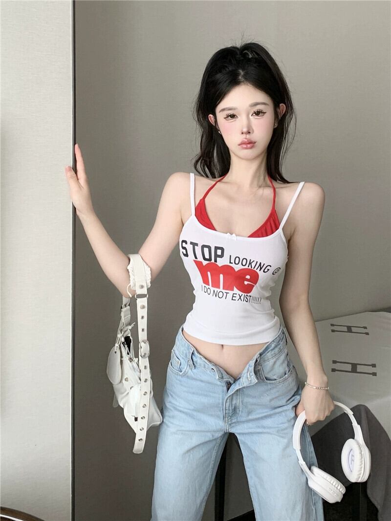 アメリカンレトロレターキャミソール女性の夏のツーピーススーツ白のセクシーなショートセクションインナージャケットアウター ホワイト サマー 夏物 bstraw85709344365 | beaute25