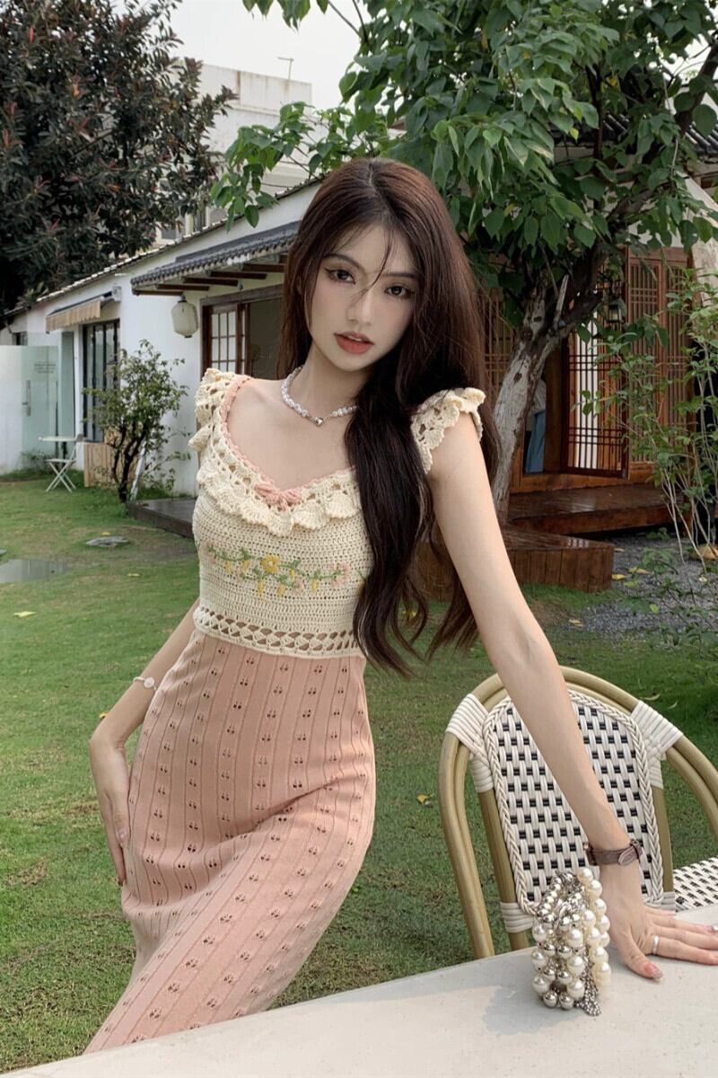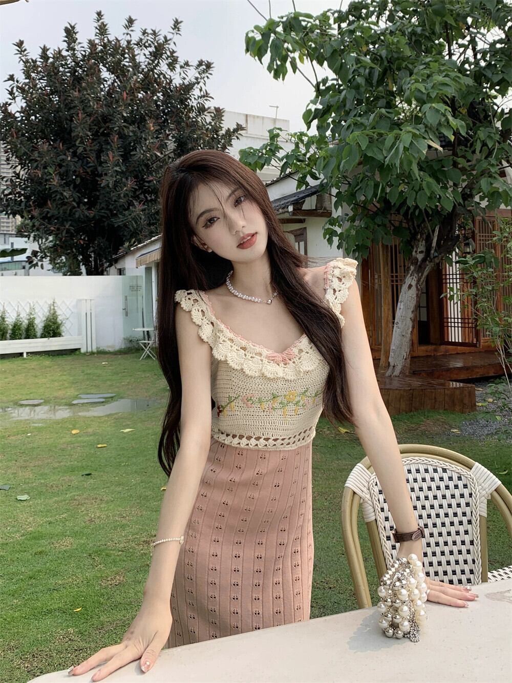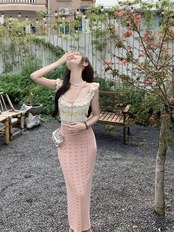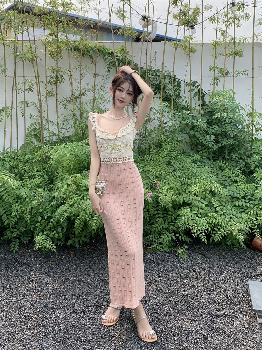 フレンチフローラルニットスリングドレス女性の夏の純粋な欲望スタイルステッチスカート気質レトロパッケージヒップスカートロングスカート サマー 夏物 花柄 ピュア bstraw25588566917 | beaute25