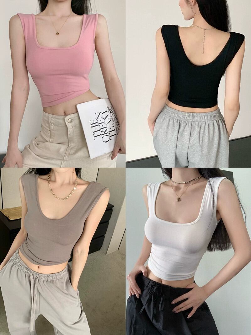 ホワイトワイドショルダーストラップサスペンダーノースリーブ小さなベスト女性の夏スクエアカラー胸を覆うインナーウェアショートスリムフィットアウタートップ サマー 夏物 スクウェア bstraw50288898487 | beaute25