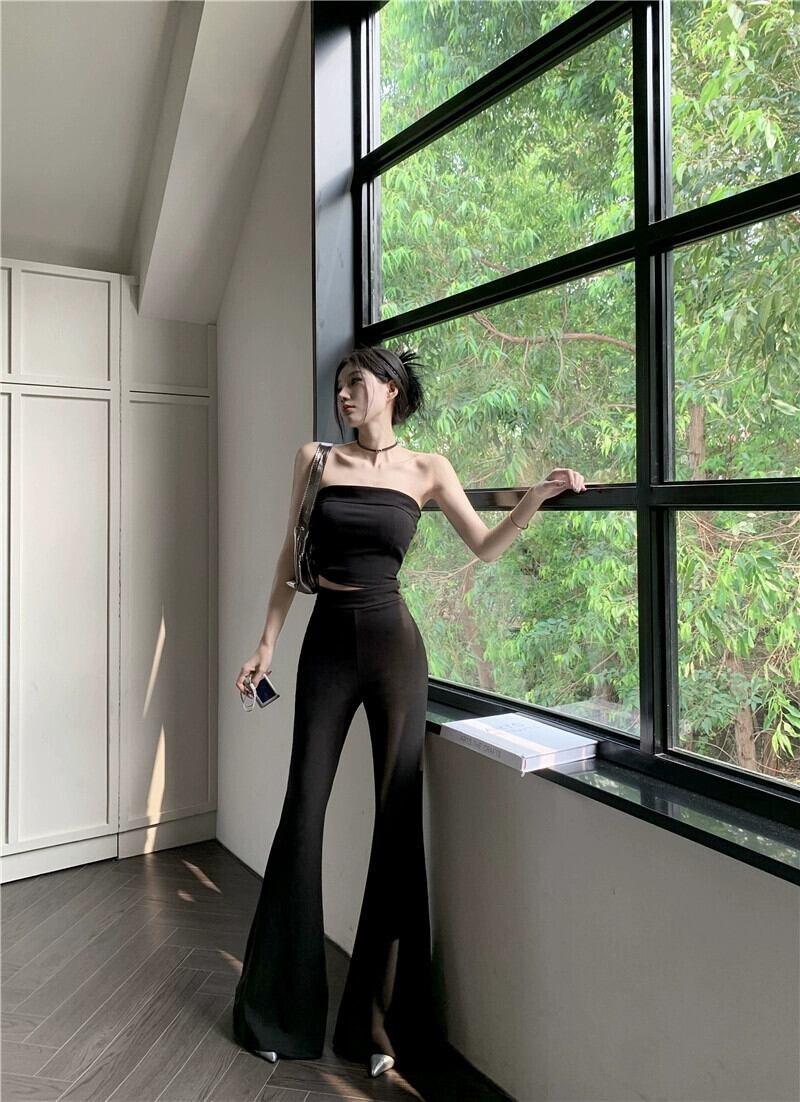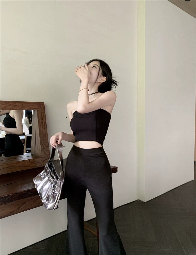 セクシーな純粋な欲望チューブトップ小さなベストサマースーツ女性ハイウエストカジュアルマイクロホーンモップパンツツーピースセット ハイウェスト 夏物 ピュア bstraw44435223565 | beaute25