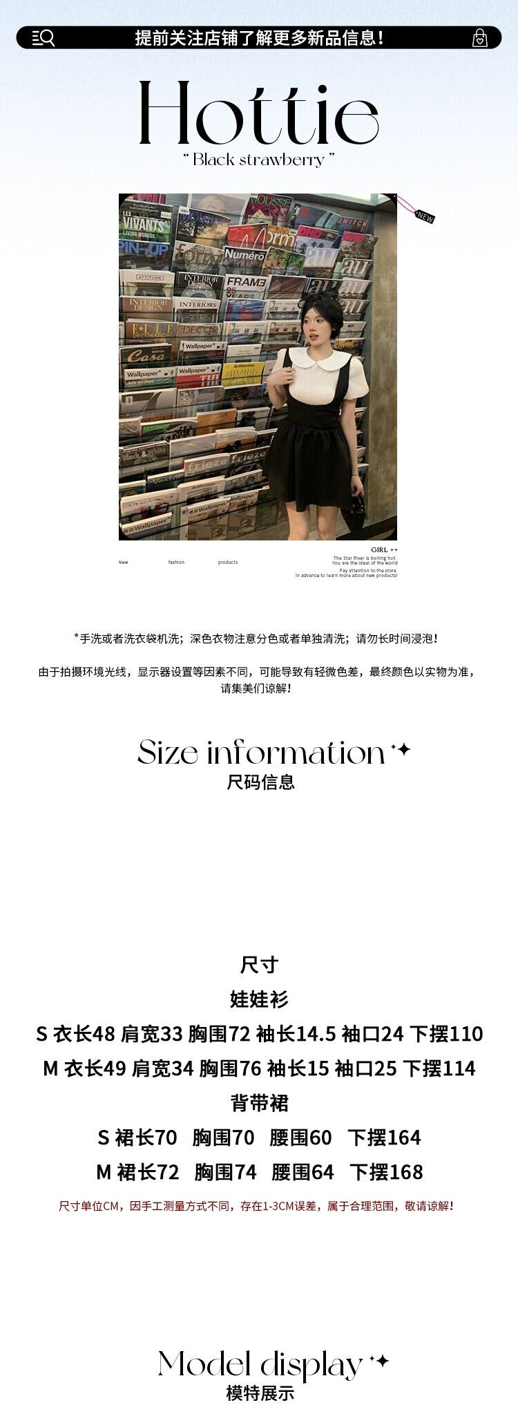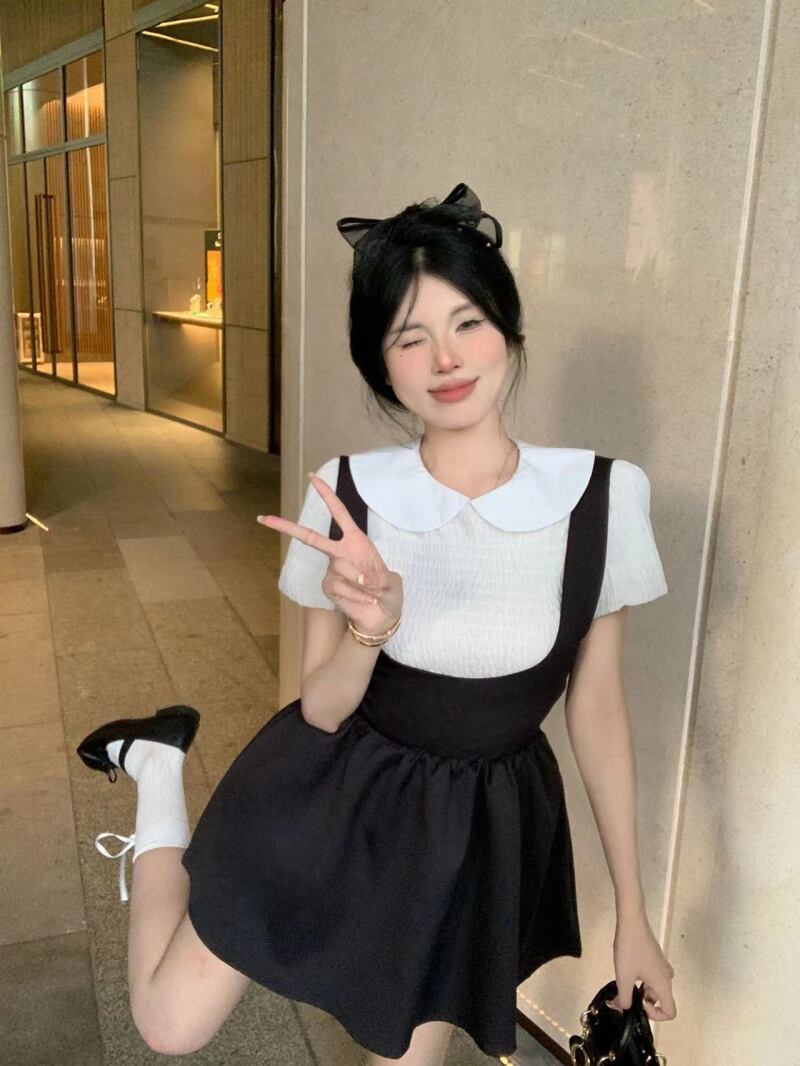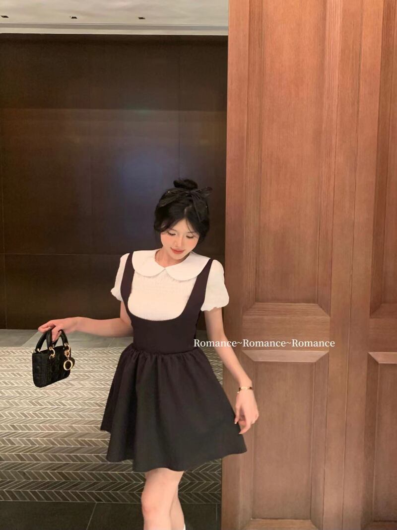 色:白い人形のシャツ,Clicブラックサスペンダードレス