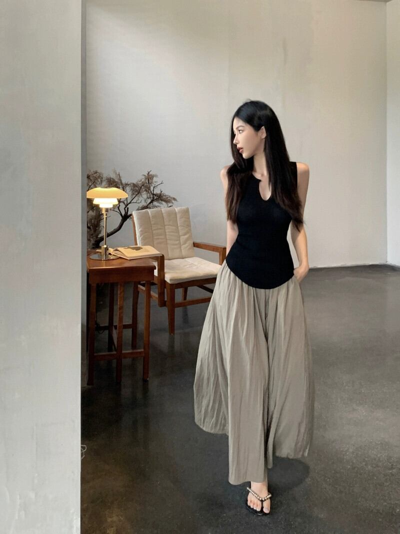 甘い女の子スーツ純粋な欲望セクシーな黒ニットキャミソールトップ女性の夏のスカートスカート 2 点セット ブラック 大人ガーリー スウィート キュート カジュアル サマー 夏物 ピュア bstraw61177741886 | beaute25
